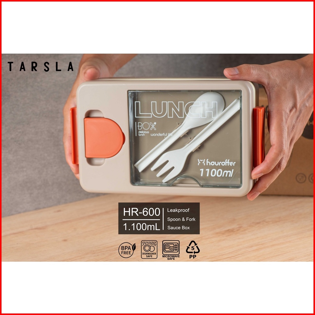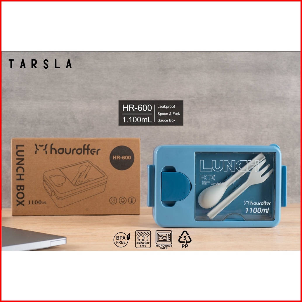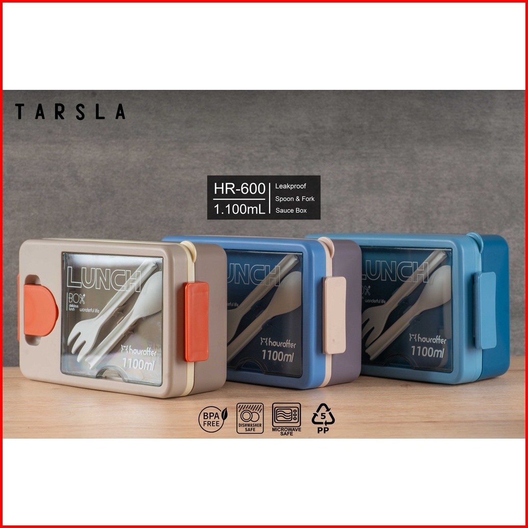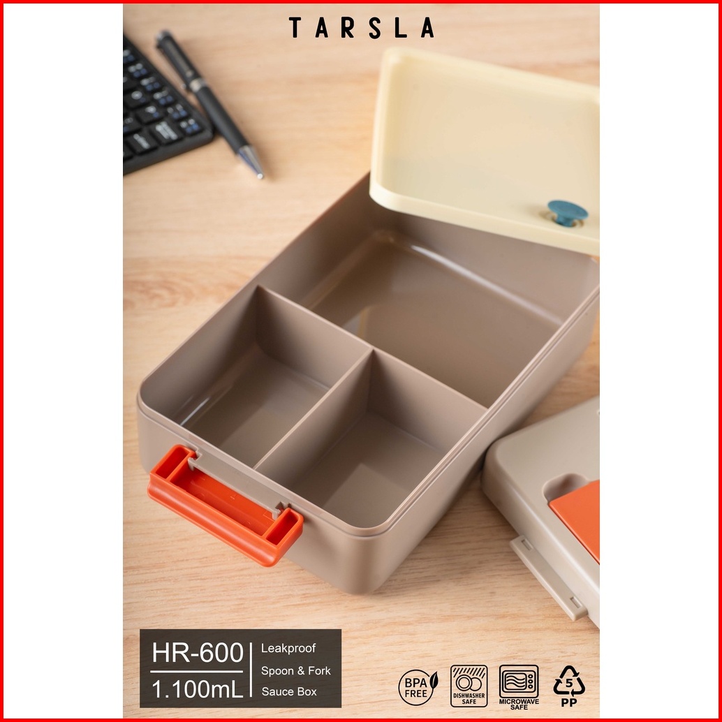 Tarsla Kotak Makan Bento 3 Sekat Hr600 Lunchbox Plastic Free Sendok Garpu 1100 Ml Anti Tumpah - Bpa Free