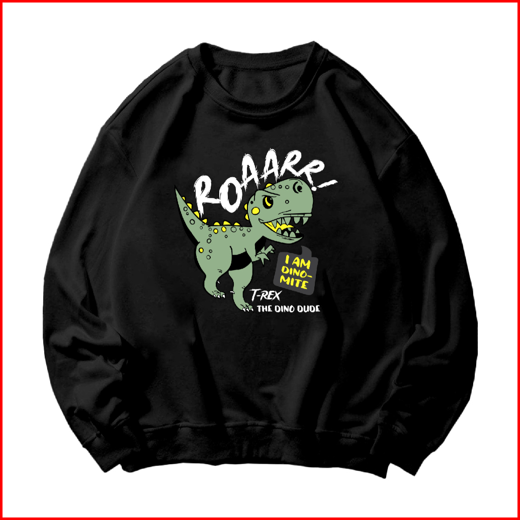 Bunz Basic Sweater Crewneck Long Sleeve The Dino Dude Size M-xxl Pria Wanita