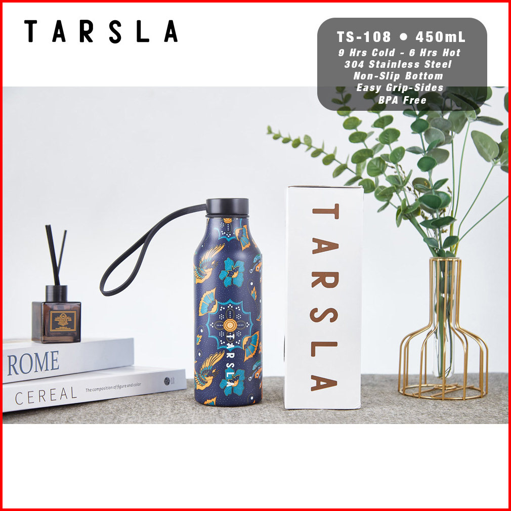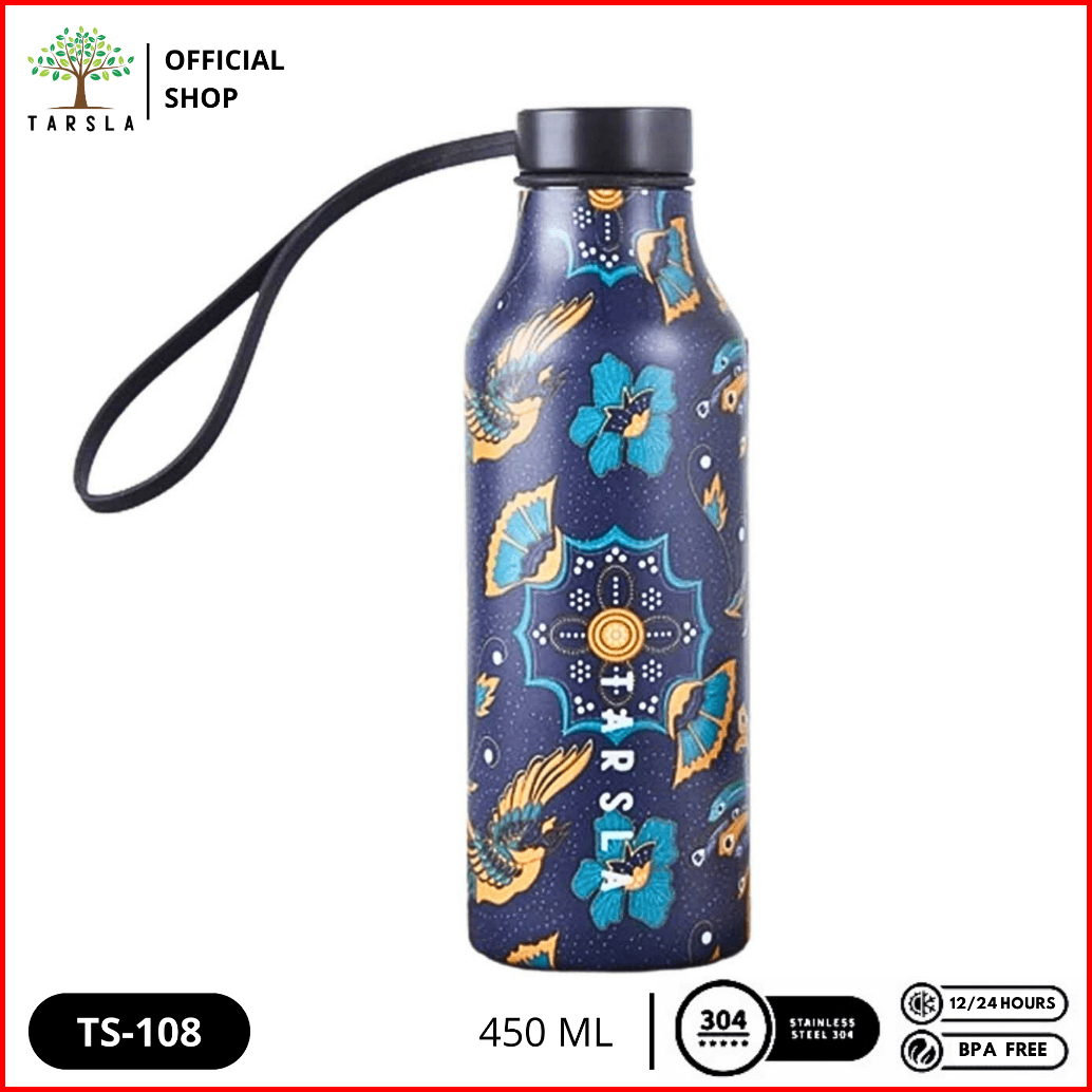 Blue Pattern Tarsla Botol Minum Termos Ts-108 Vacuum Flask Tumbler 450 Ml Tahan Panas Dingin