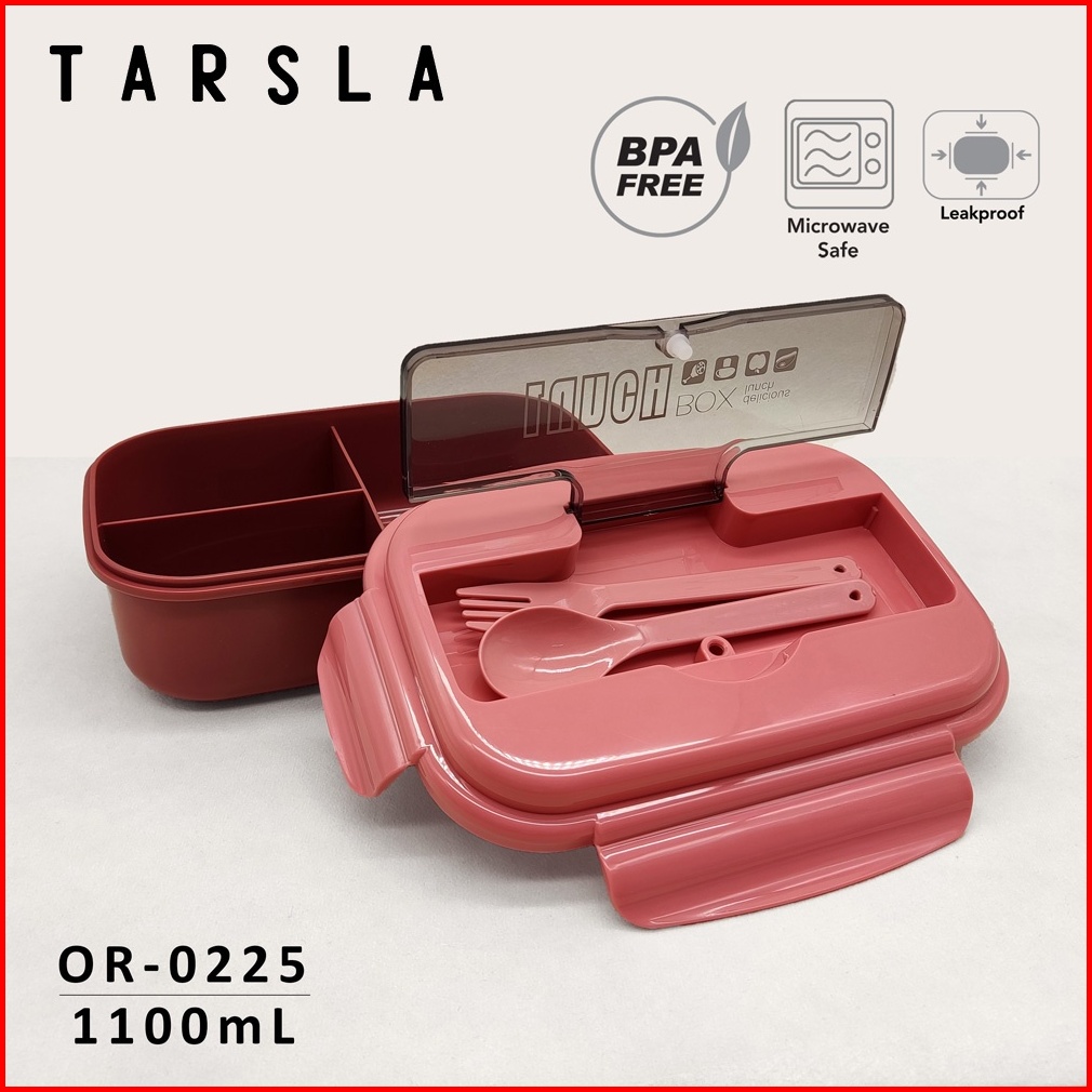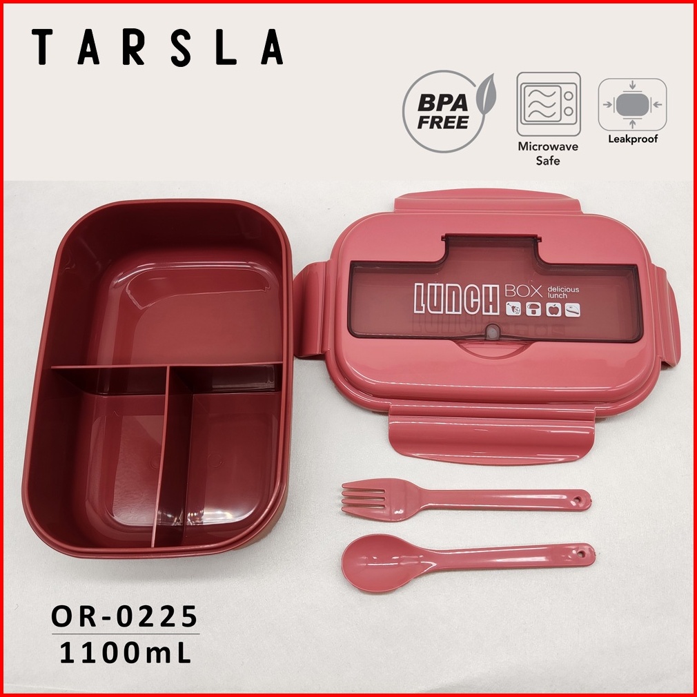 Tarsla Tempat Makan Kotak Bekal Lunchbox Or-0225 Anti Tumpah Free Sendok Garpu Red