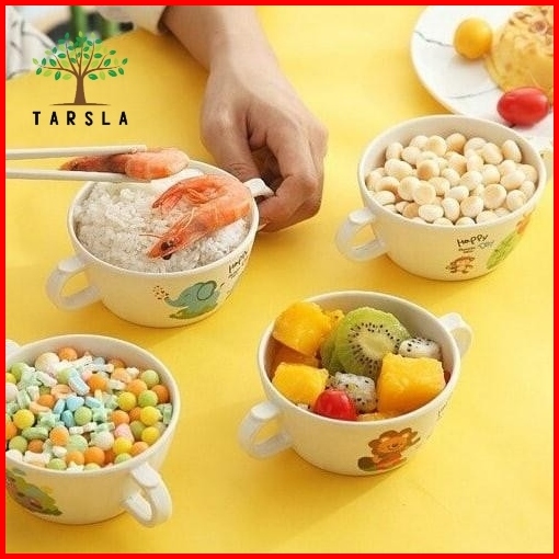 Tarsla Mangkok Bayi D1809 Double Ear Bowl Mangkok Kuping Karakter Lucu - Karakter Random