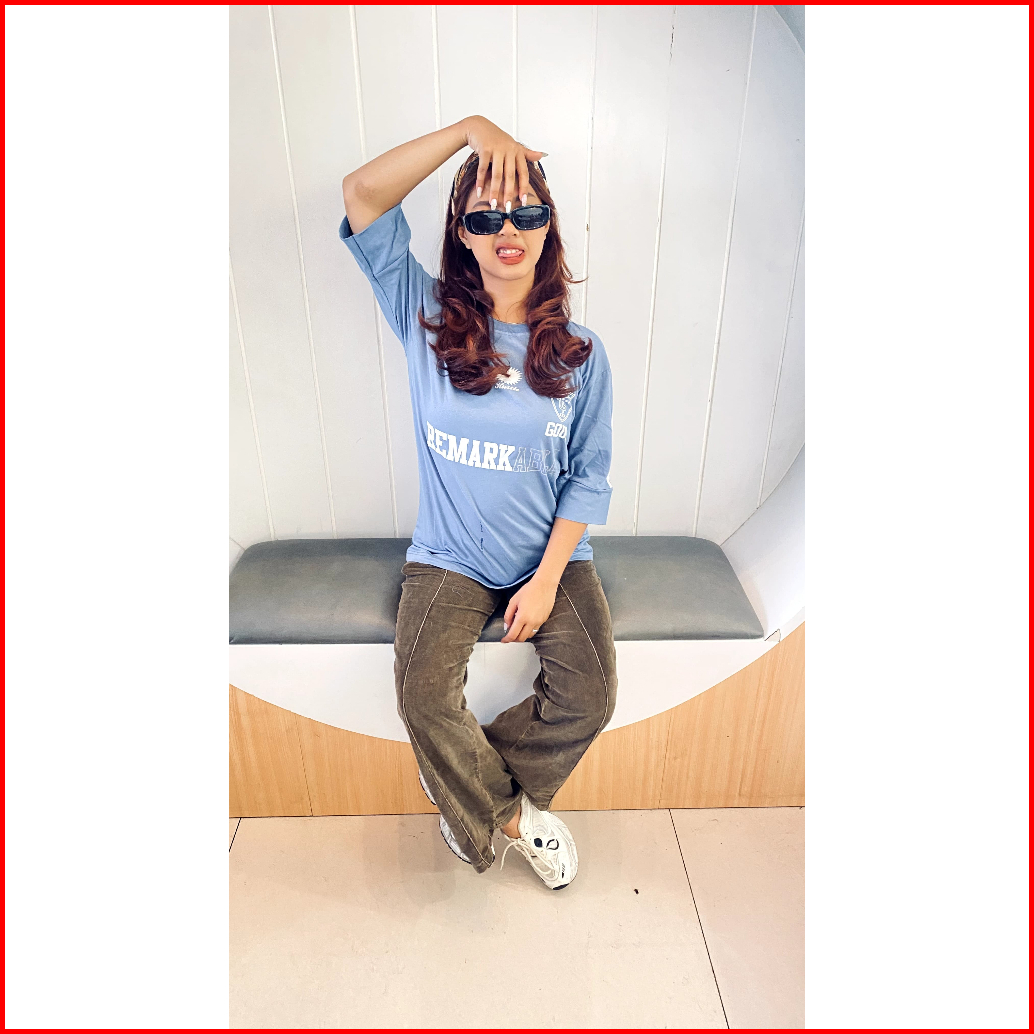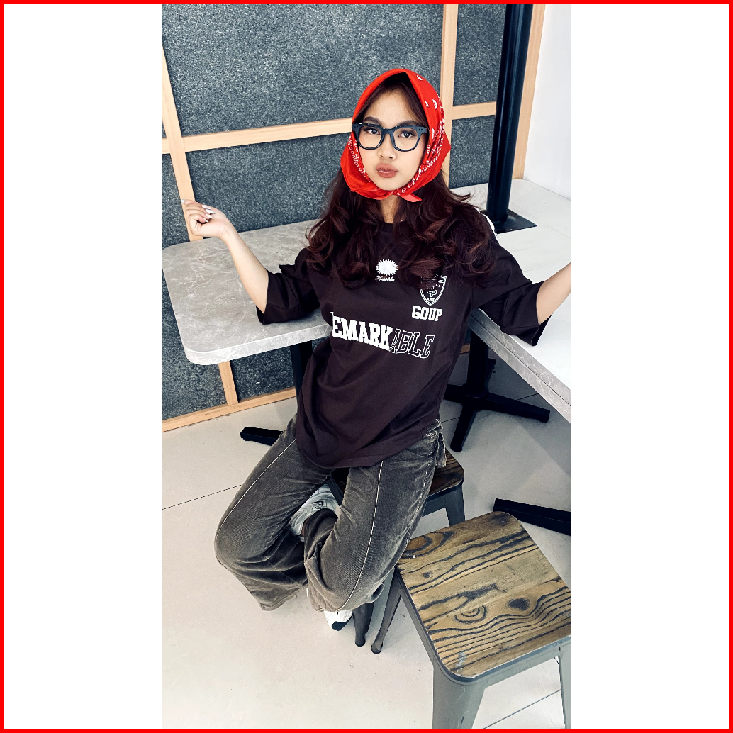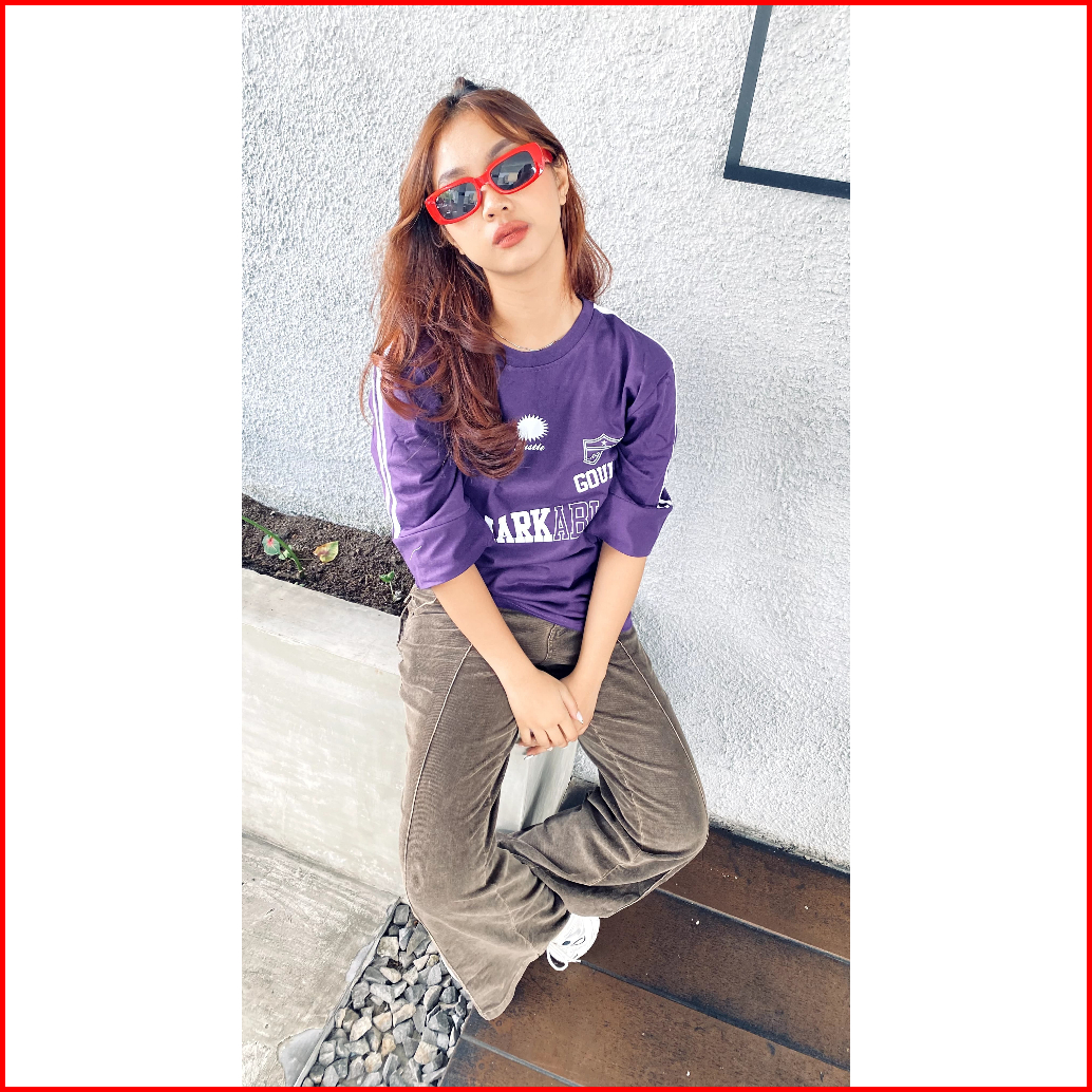 American Retro Kaos Wanita Lengan Pendek Letter Graffiti Stripe Lengan Raglan Causual Oversize Kekinian Premium