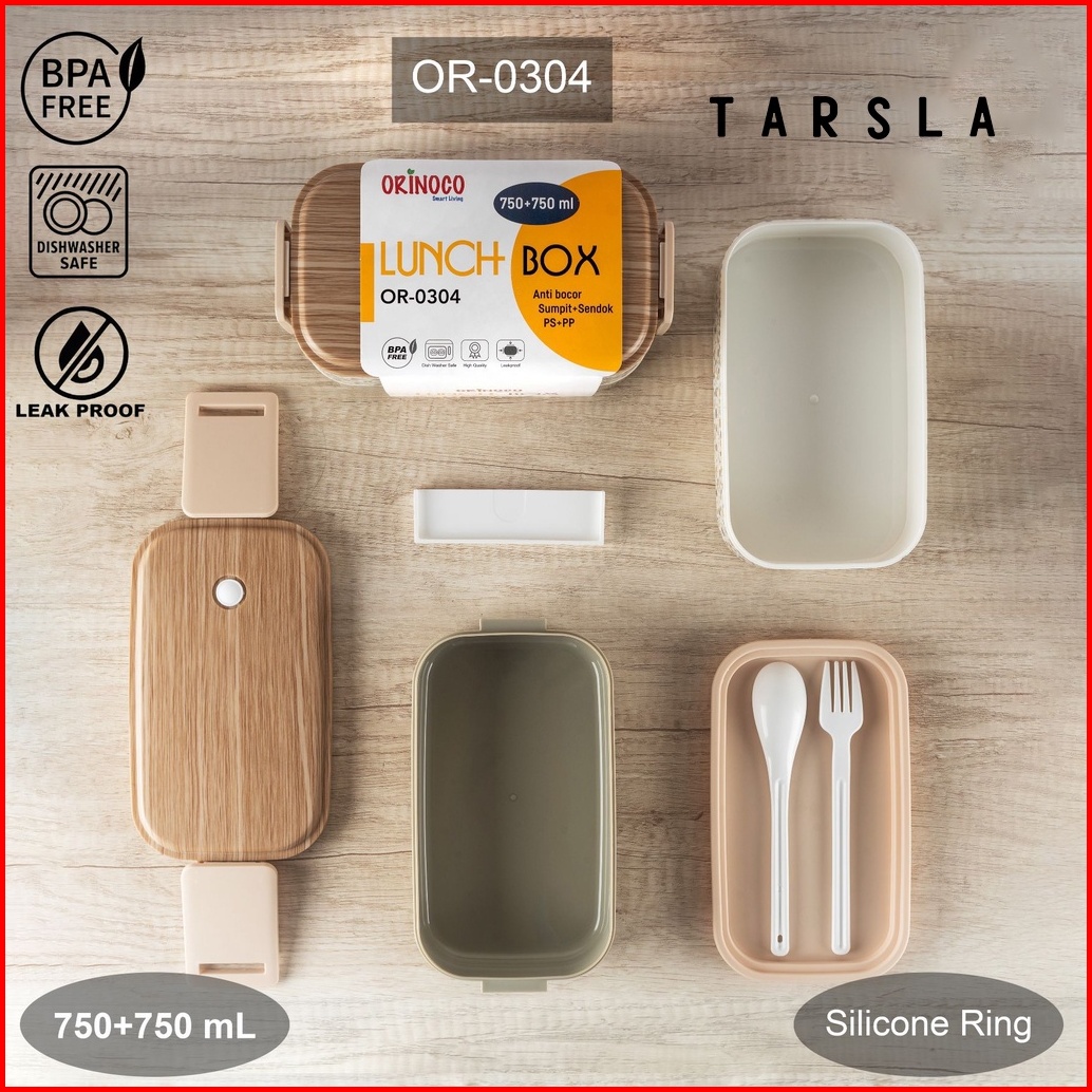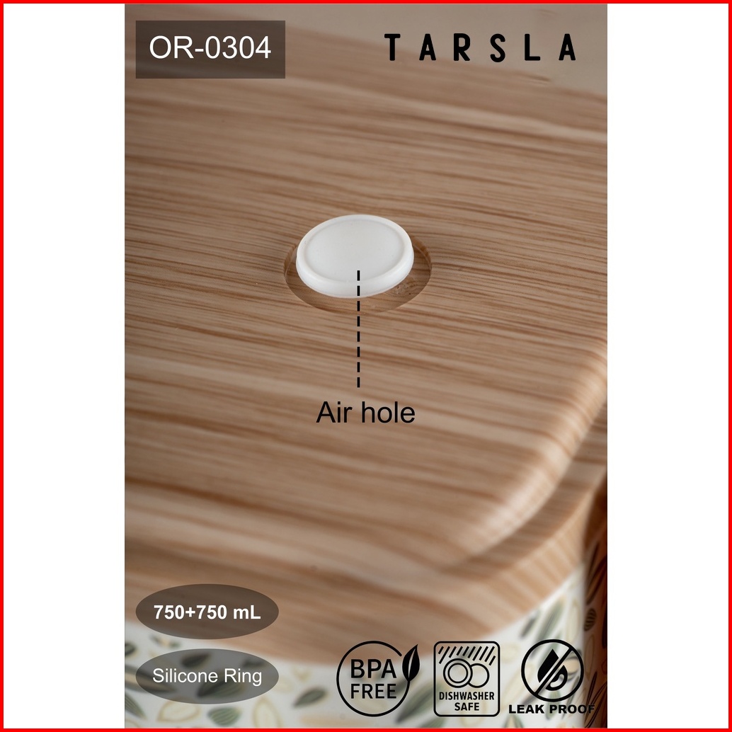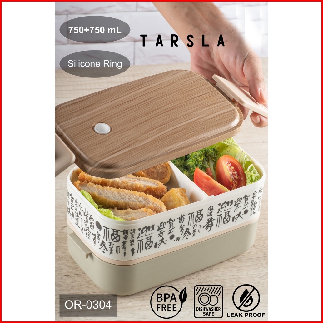 Tarsla Kotak Makan Bekal Or-0304 Lunchbox 2 Layer Bahan Serat Kayu Motif Jepang 1500 Ml Food Grade Bpa Free
