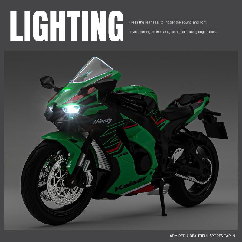 Diecast Alloy Miniatur Motor Ninja ZX10R Skala 1:12 dgn suara dan lampu + Paddock + Tatakan