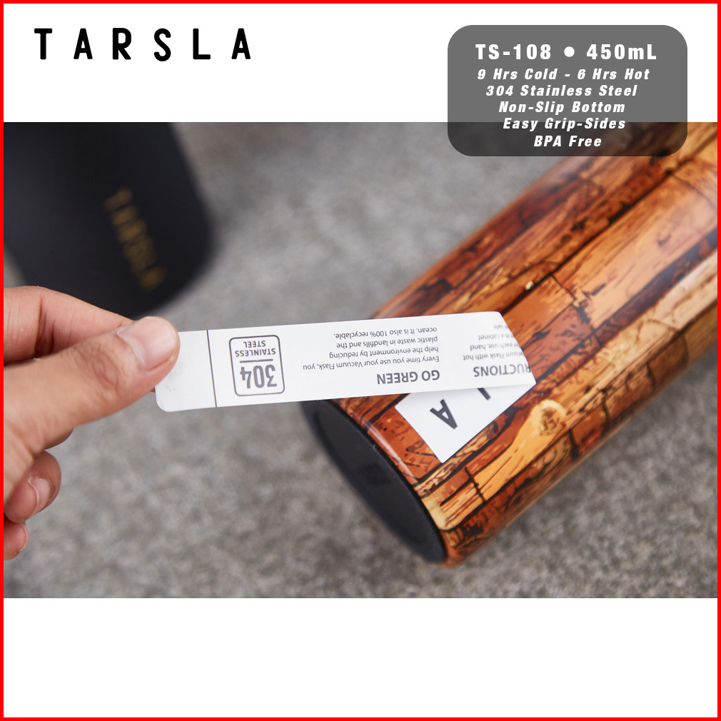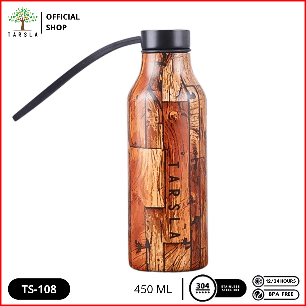 Tarsla Botol Minum Thermos Ts-108 Tumbler Motif Kayu Water Printing 3d 450 Ml Anti Tumpah Bocor Trendy Wood
