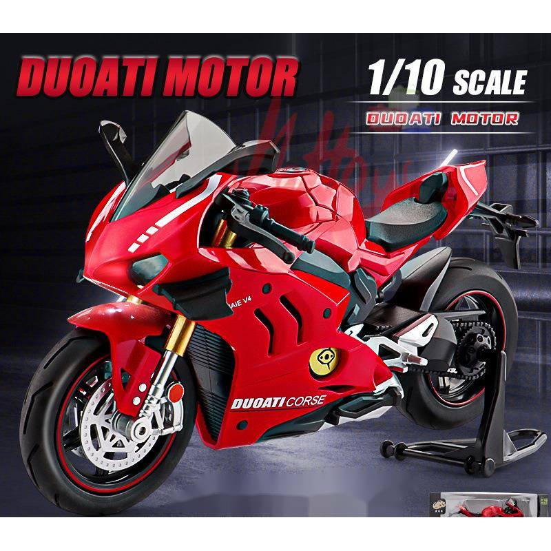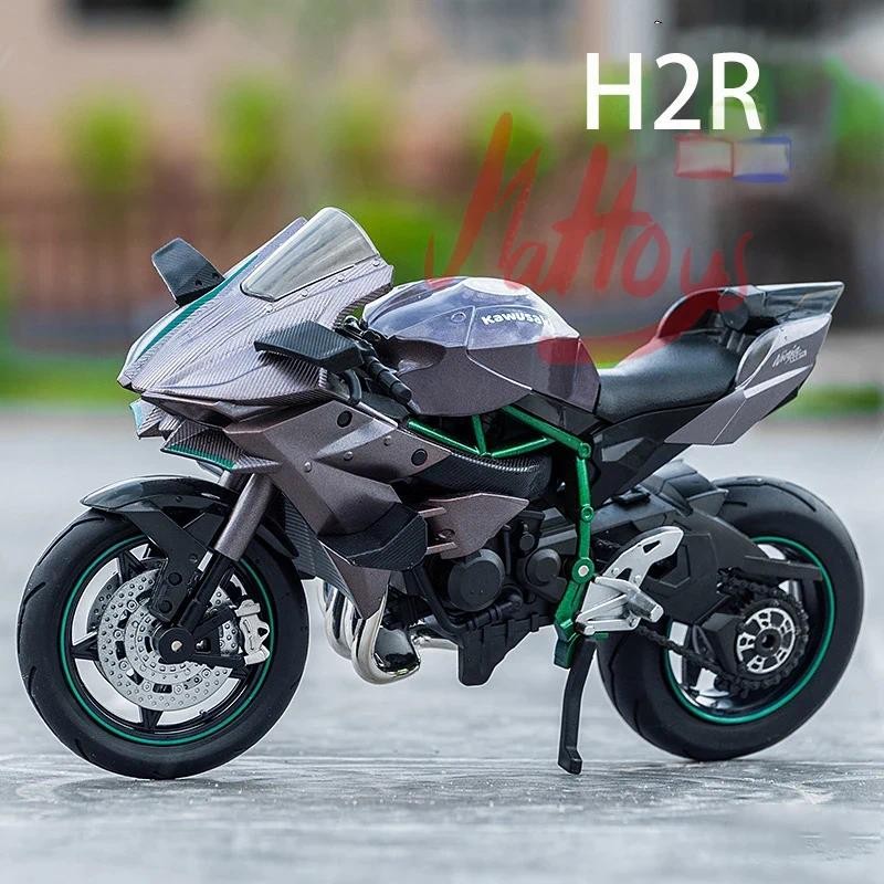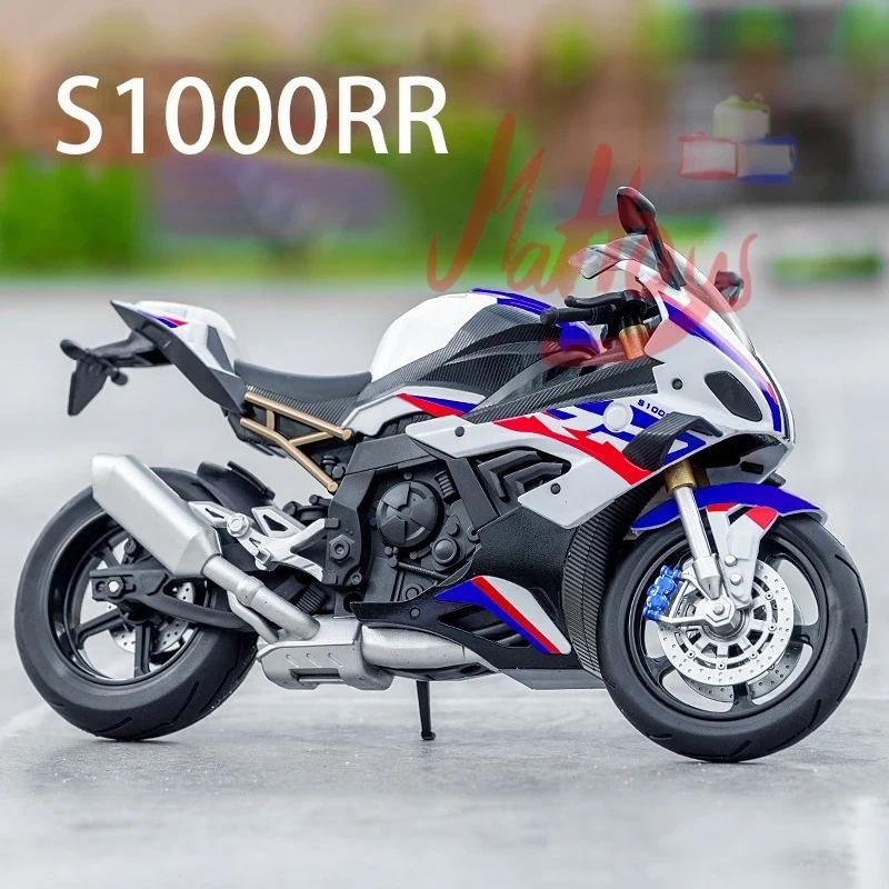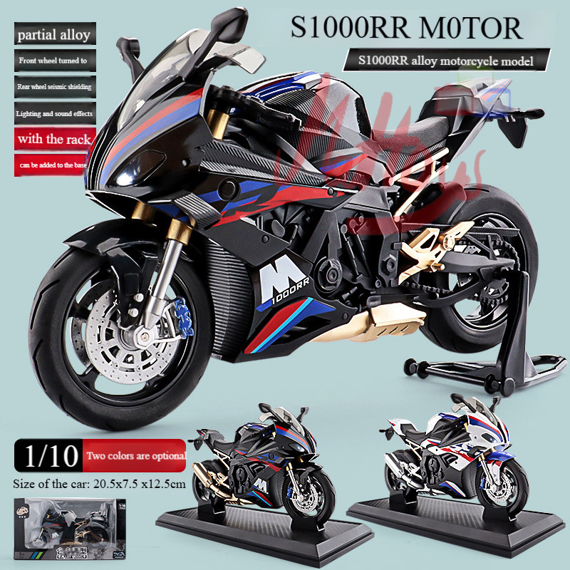 1:10 Diecast Kawasaki Ninja H2R BMW S1000RR Ducati Panigale V4s Motor Miniatur Suara Lampu Pajangan