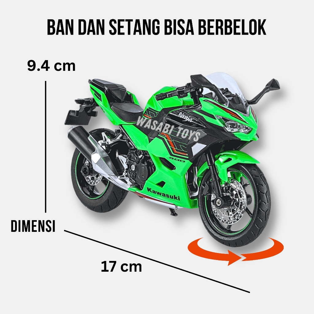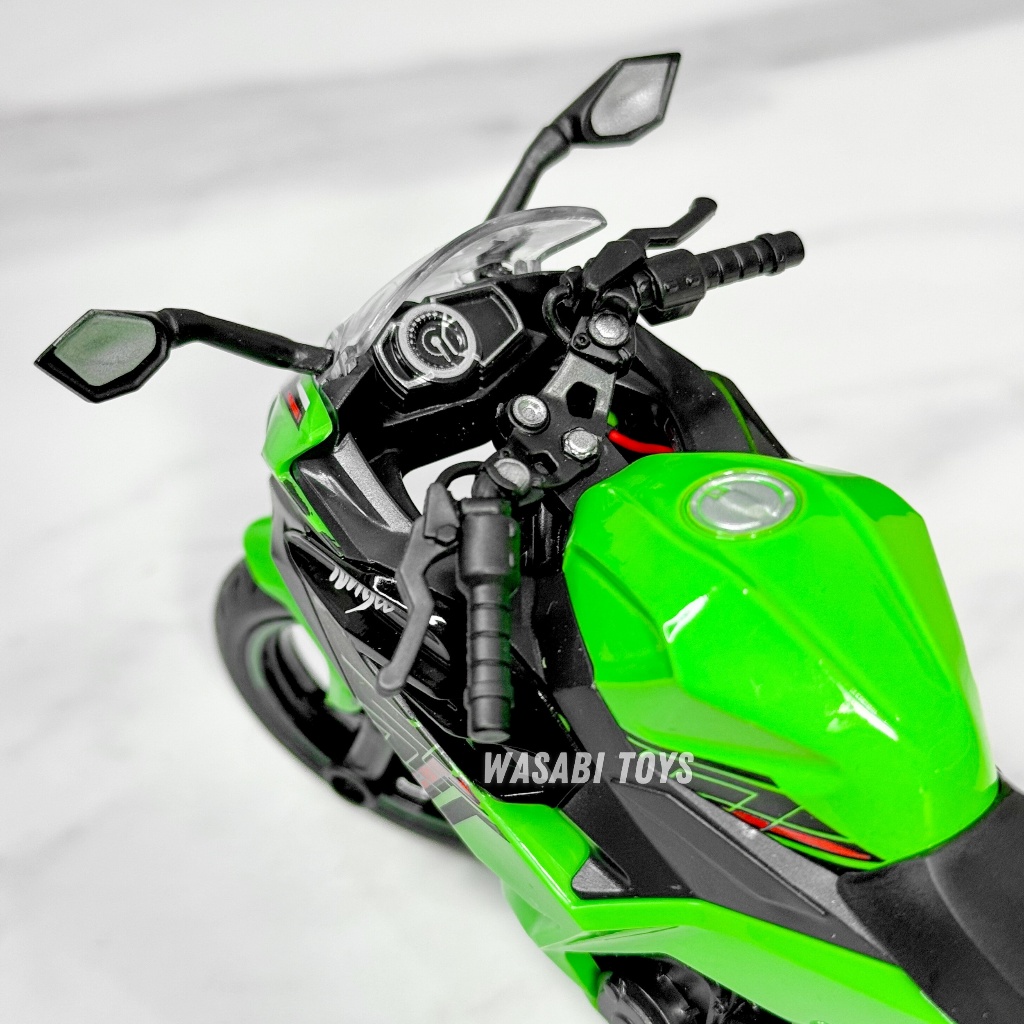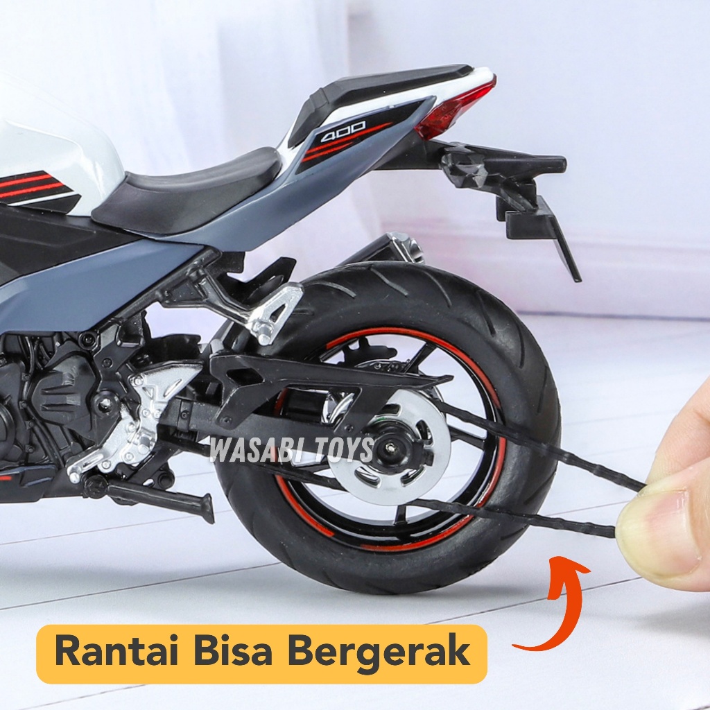 Miniatur Diecast 1:12 Kawasaki Ninja 400 ZX 4R ZX-4R (Rantai Gerak, Paddock, Suspensi, Lampu, Suara)