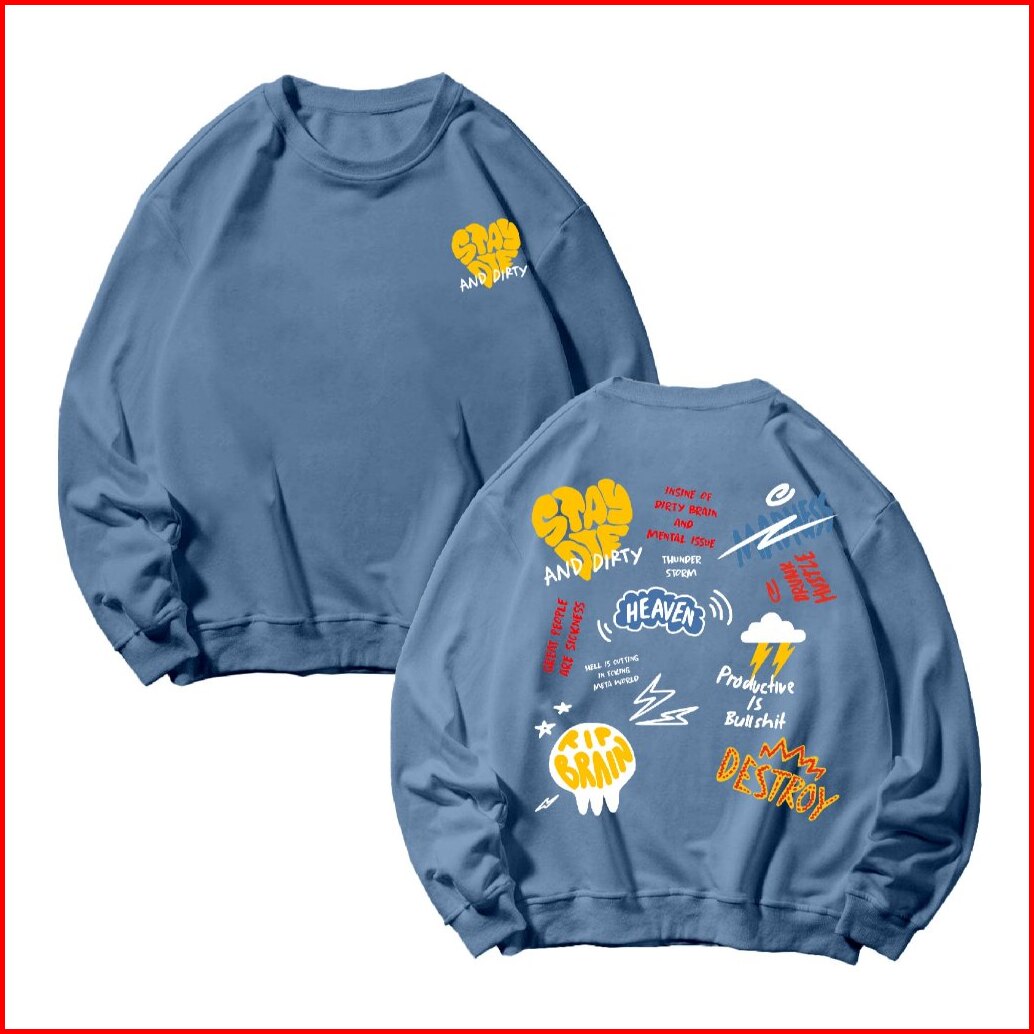 Bunz Basic Sweater Crewneck Long Sleeve Stay Die Size M-xxl Pria Wanita