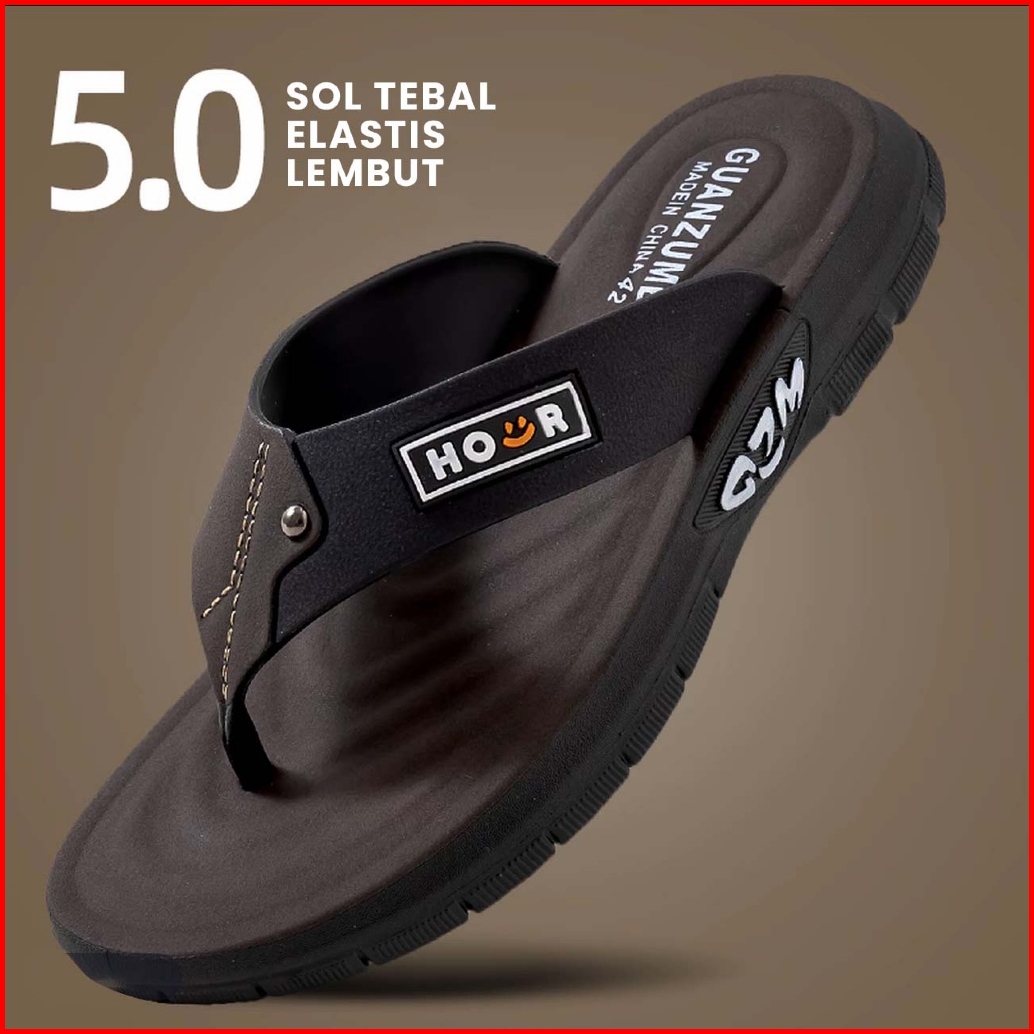 Sandal Pria Kulit 2025 Sendal Cowok Crocs Selop Gunung Kasret Kerja Awet Ringan G-03