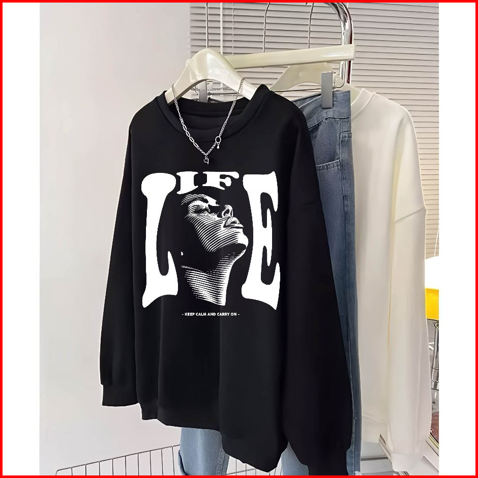 Bunz Basic Sweater Crewneck Long Sleeve Life Size M-xxl Pria Wanita