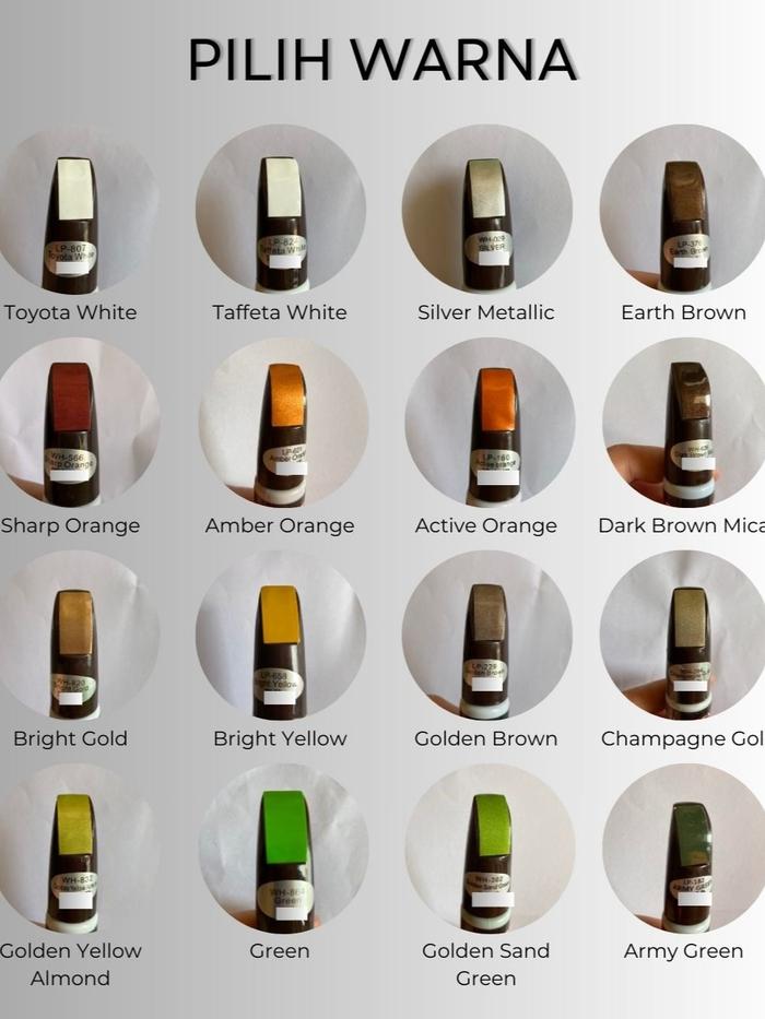 Active Orange, Agate Red, Amber Orange, Army Green, Azure Blue, Black, Blue, Bright Gold, Bright Yellow, Champagne Gold, Dark Brown Mica, Earth Brown, Golden Brown, Golden San Gren, Golden Yellow Almond, Green, Grey Pearl, Ice Blue, Matte Black, Passion Blue, Pearl White, Pearlite Blue, Platinum Grey, Pure Silver, Purple, Red, Red Pearl, Sharp Orange, Silver, Silver Metallic, Taffeta White, Titanium Grey, Toyota White, White