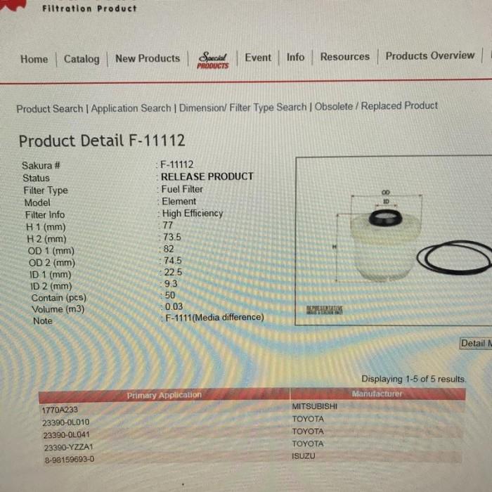 GRATIS ONGKIR ! FILTER SOLAR INNOVA DIESEL FORTUNER PAJERO SPORT SAKURA F-11112 - SPESIFIKASI ORI