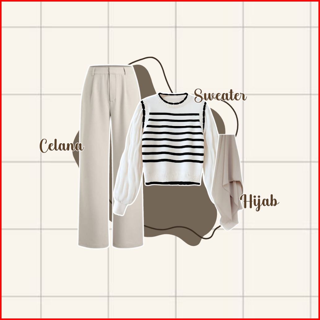 Dazzelchic 4 In 1 Set Ab378 - Outfit Lebaran One Set Wanita Korean Style Hijab Belt Sweater Celana Setelan Cewek Kuliah