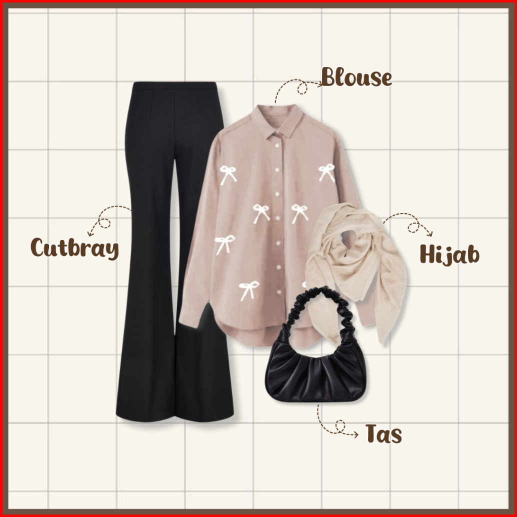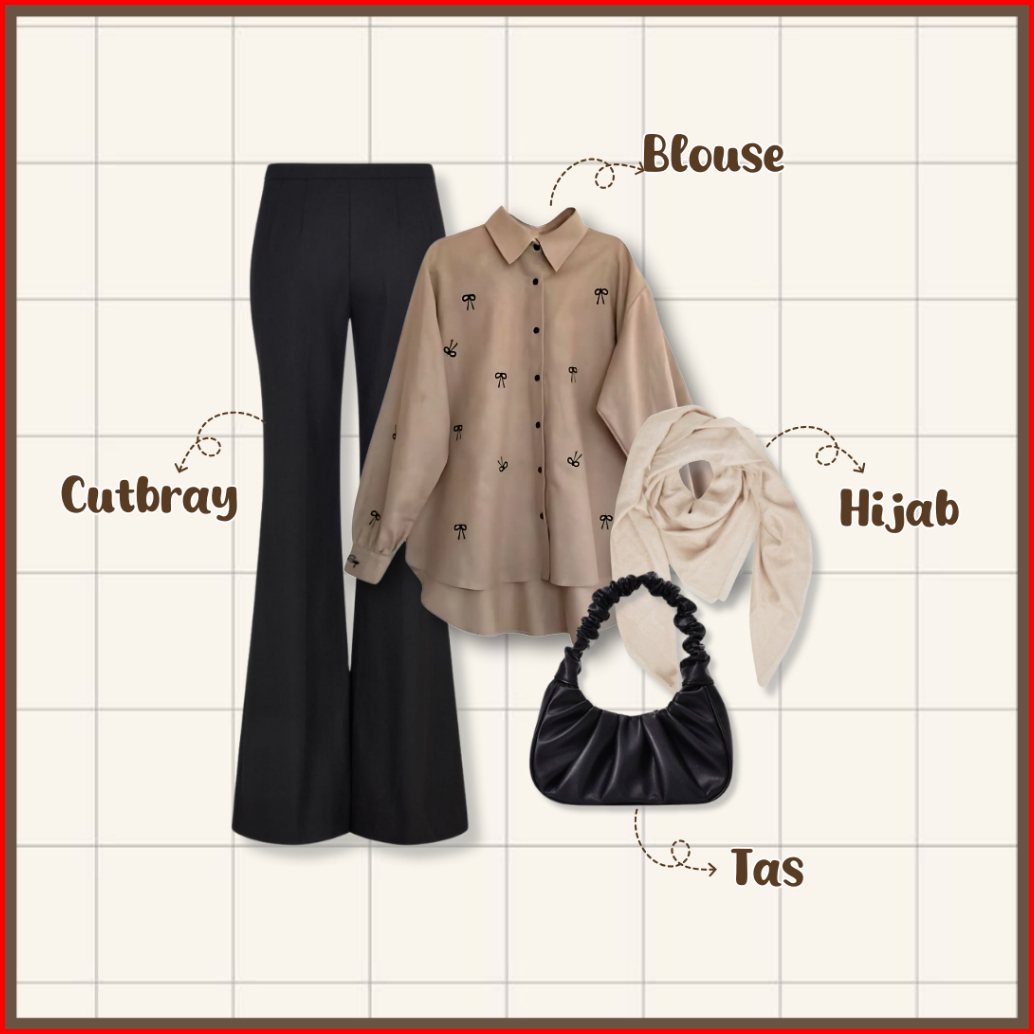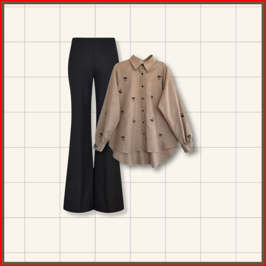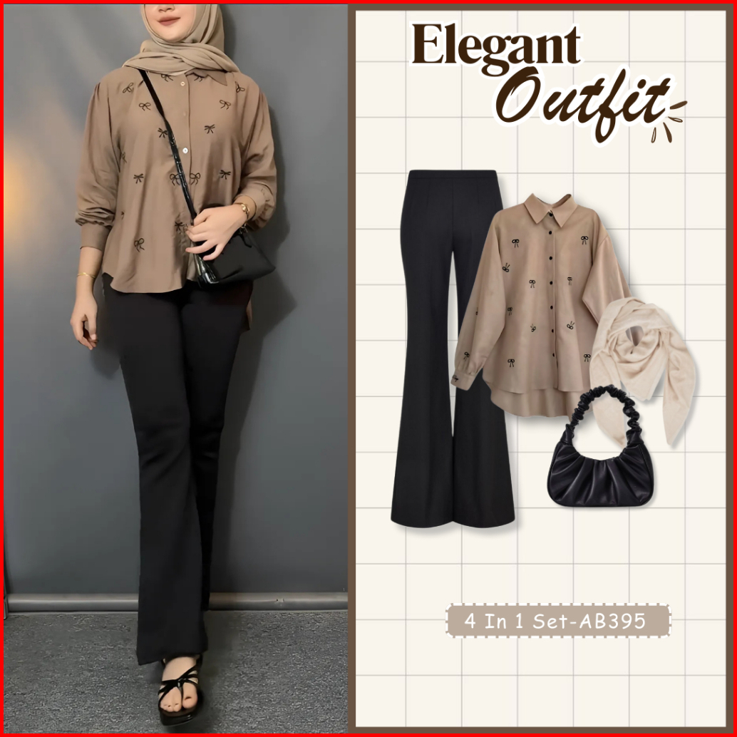 4 In One Set Korean Style Tas Bella Square Blouse Celana Cutbray Setelan Wanita Kekinian - Set Ab395