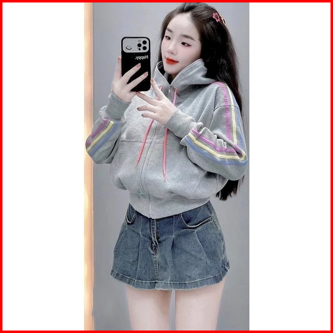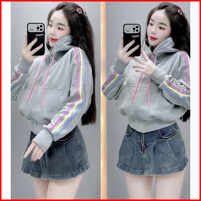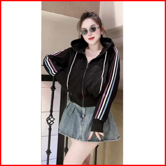 Puel Zip Hoodie Zipper Jacket Semi Crope Wanita Korean Style Ii Basic Style Hoodie Jaket Crop