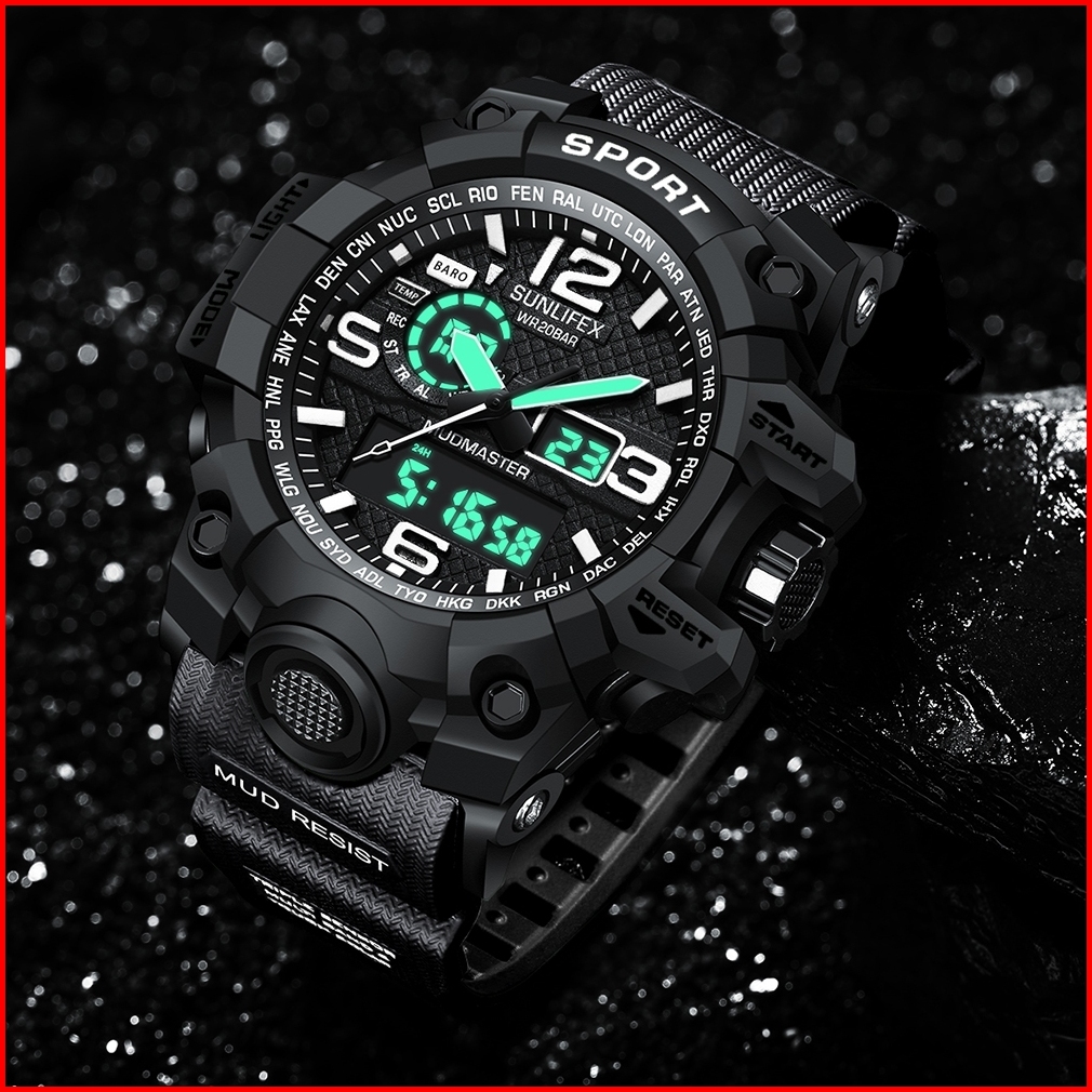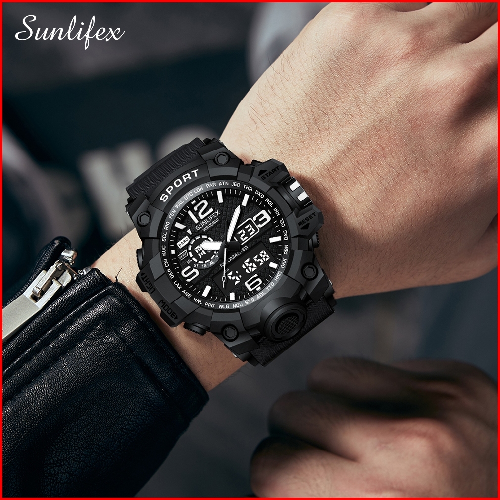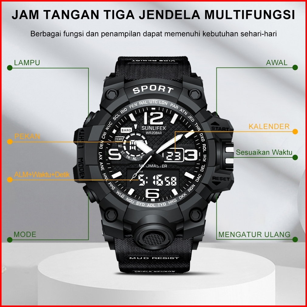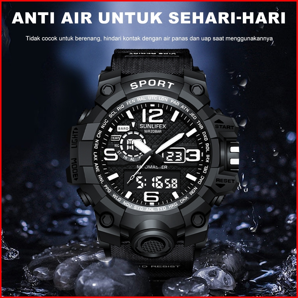 Sunlifex D001 Jam Tangan Pria Digital Tali Silikon Anti Air Bercahaya Olahraga Keren Kasual Cowok