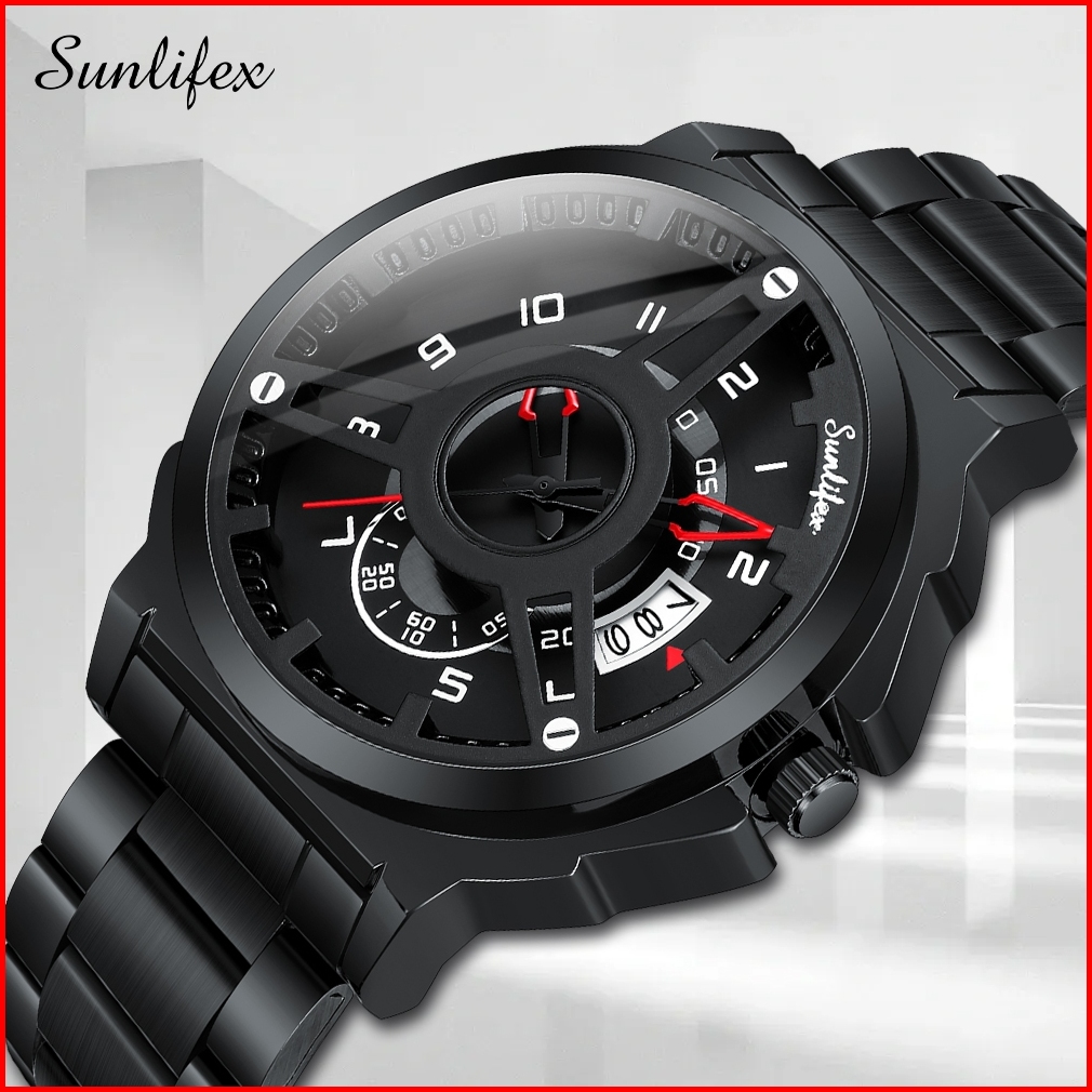 Sunlifex 9111 Jam Tangan Pria Hollow Dial Anti Air Tali Stainless Steel Keren Original Watch Cowok