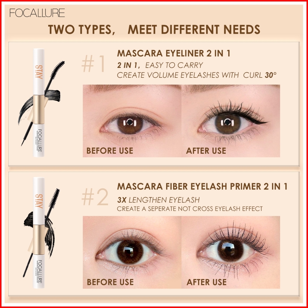 Focallure 2 In 1 Waterproof Maskara Eyeliner Fiber Eyelash Primer