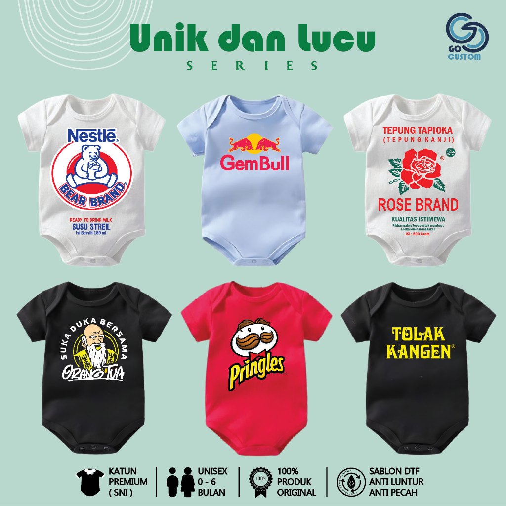 Baju Bayi Jumper Baby Karakter F&B Cemilan Lucu Kaos Bayi Usia 0-6 Bulan
