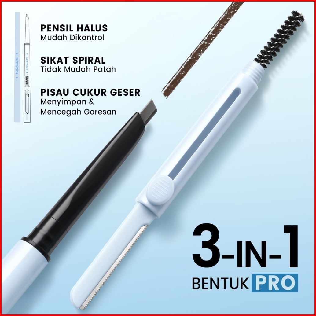 Focallure Pensil Alis 3-in-1 Pro-shaping Kuas Pisau Cukur Bawaan Multi-guna