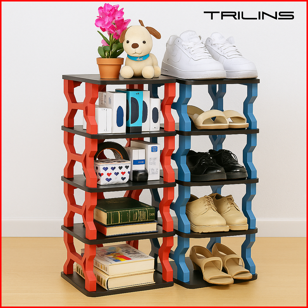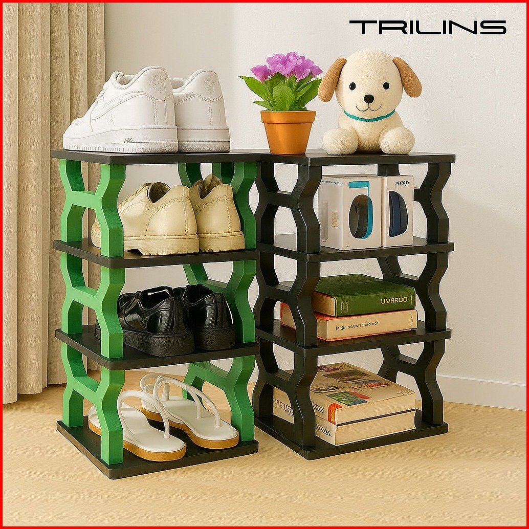 Rak Sepatu X Korea Plastik Tempat Penyimpanan Sandal Boneka Zig Zag 4 5 Tingkat - Black Base