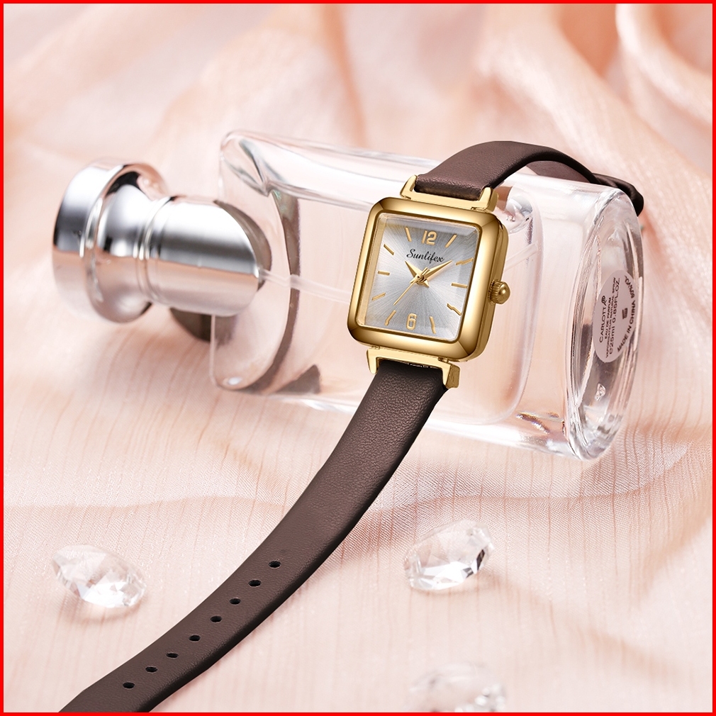 Sunlifex 8004 Jam Tangan Wanita Original Square Bergaya Elegan Anti Air Kuarsa Tali Kulit Cewek New