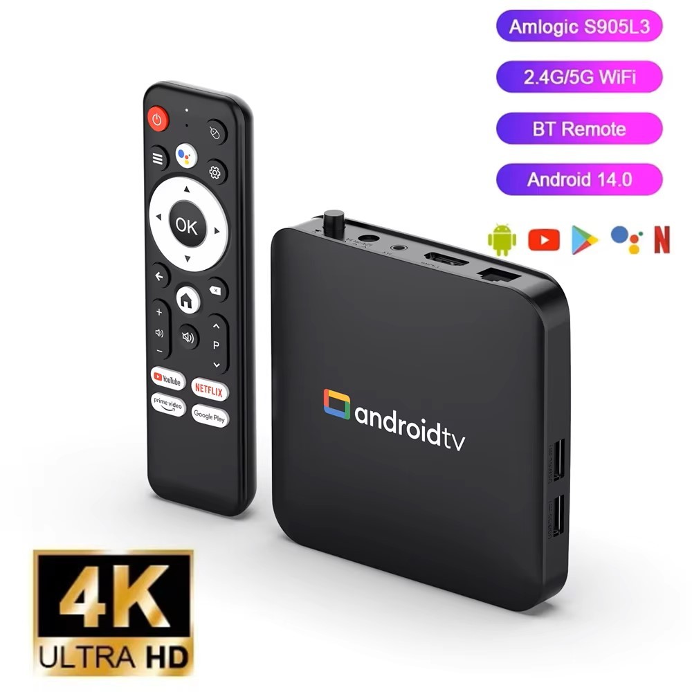 STB H96 Max Android TV Box 14.0 Smart TV Box 2/8Gb Amlogic S905L3 Quad-Core 5G Dual Band WiFi Bluetooth 4K Media Player dengan Remote Control Suara