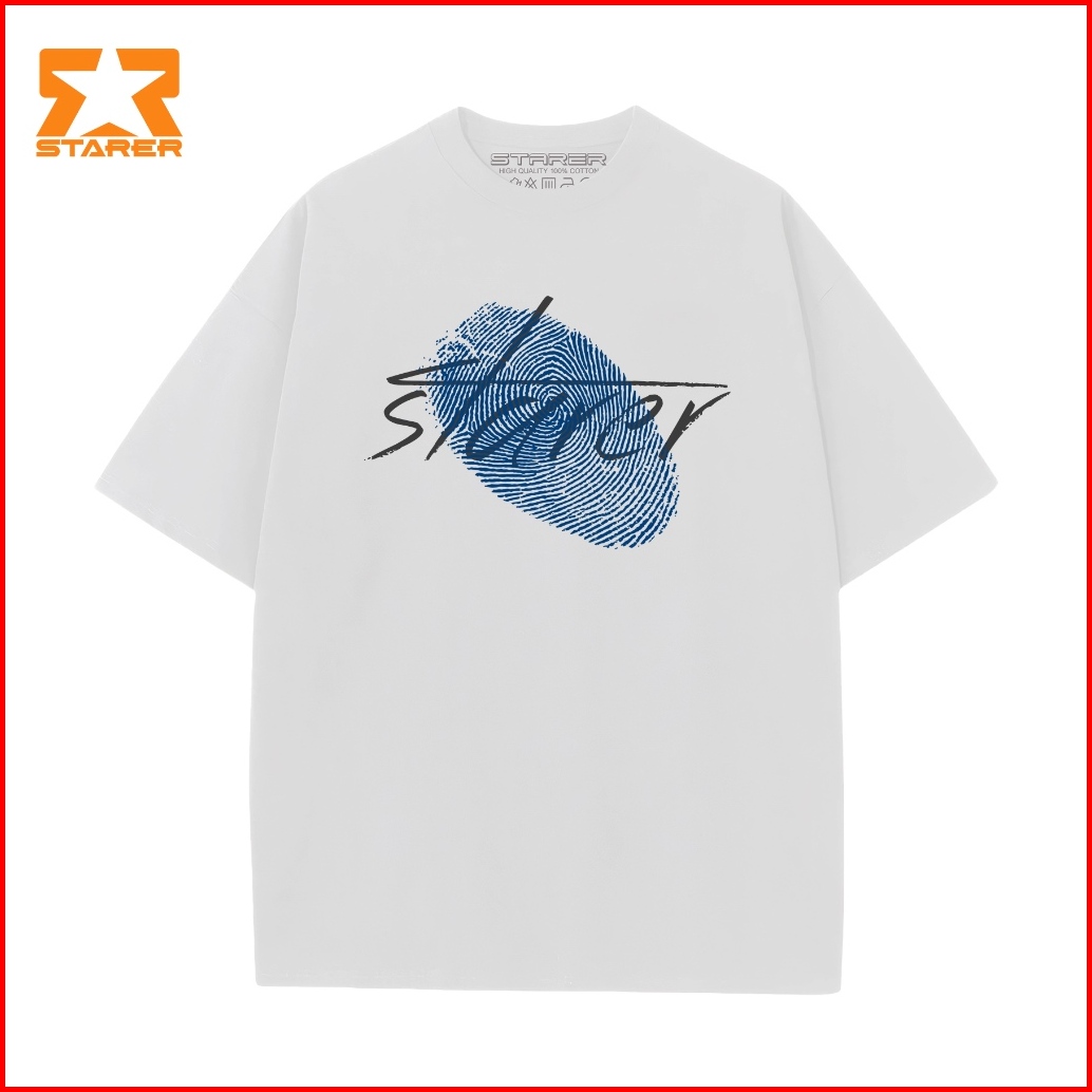 Starer Kaos T-shirt Oversize Pria Wanita Distro Lengan Pendek Polos Cotton Baju Fingerprint 0014