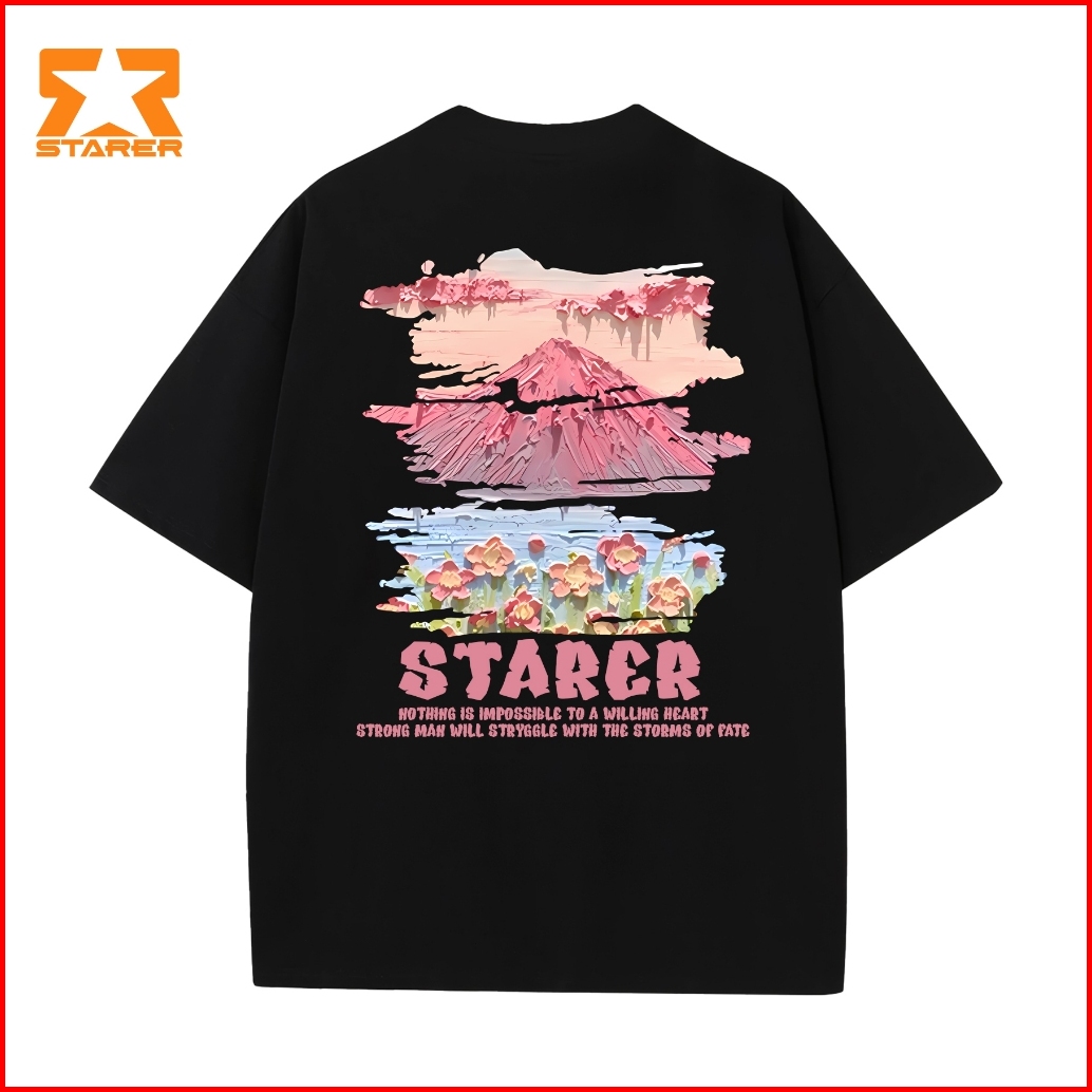 Starer Kaos Distro Lengan Pendek Bahan Cotton 24s Lembut Uniseks Black T-shirt 0034