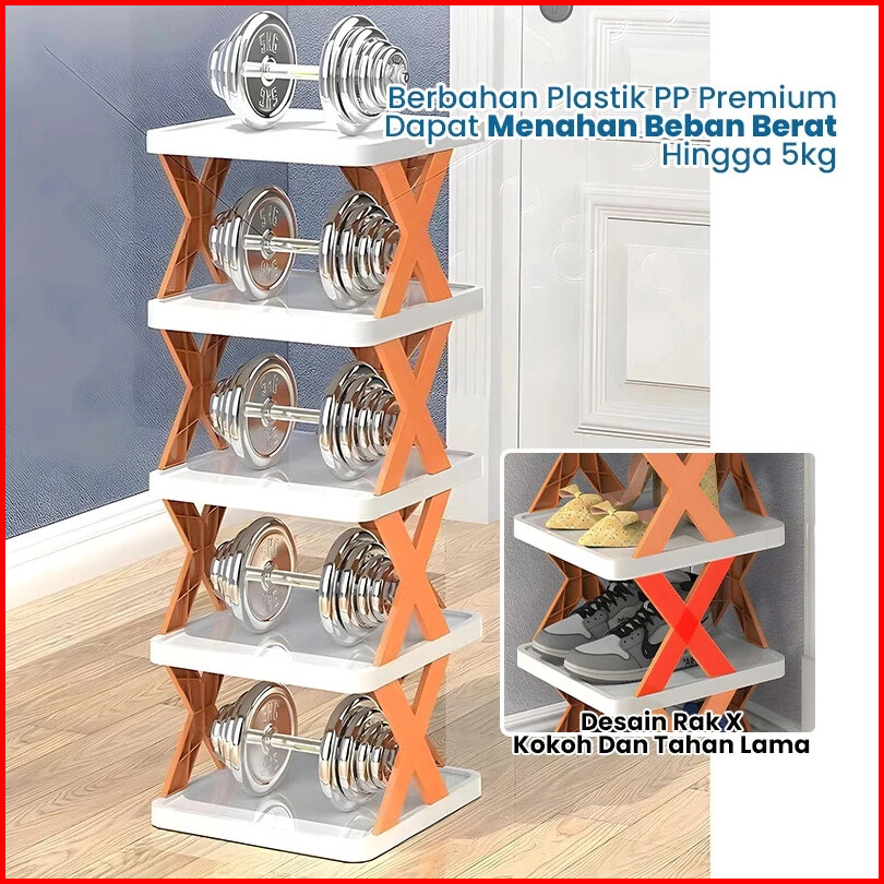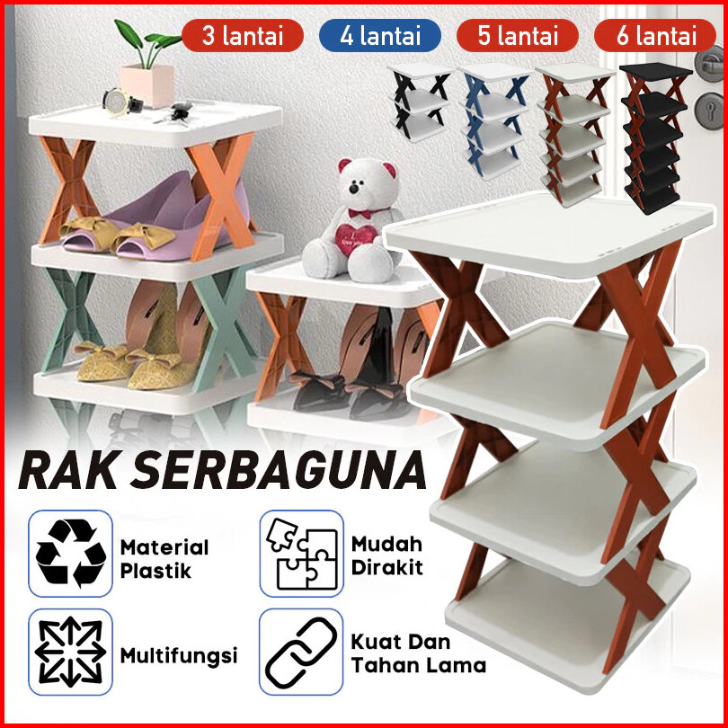 Rak Sepatu X Tempat Rak Serbaguna Plastic Rak Sepatu Susun Rak Sandal Tempel Sendal 2 3 4 5 6 Susun