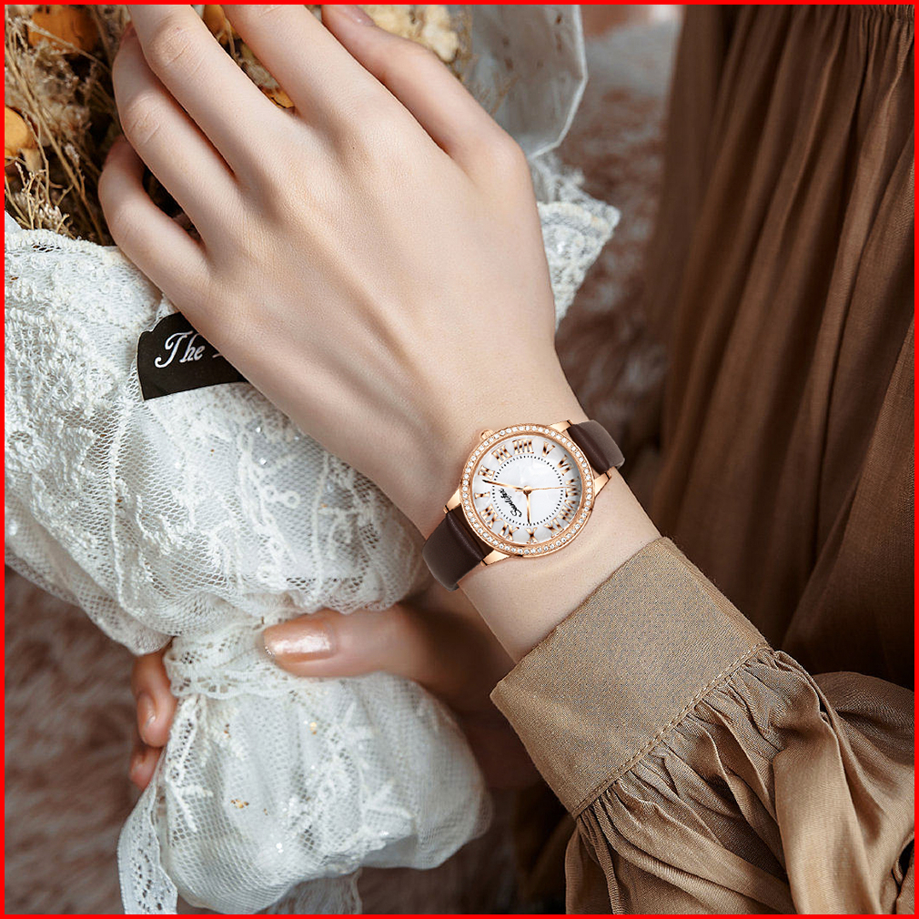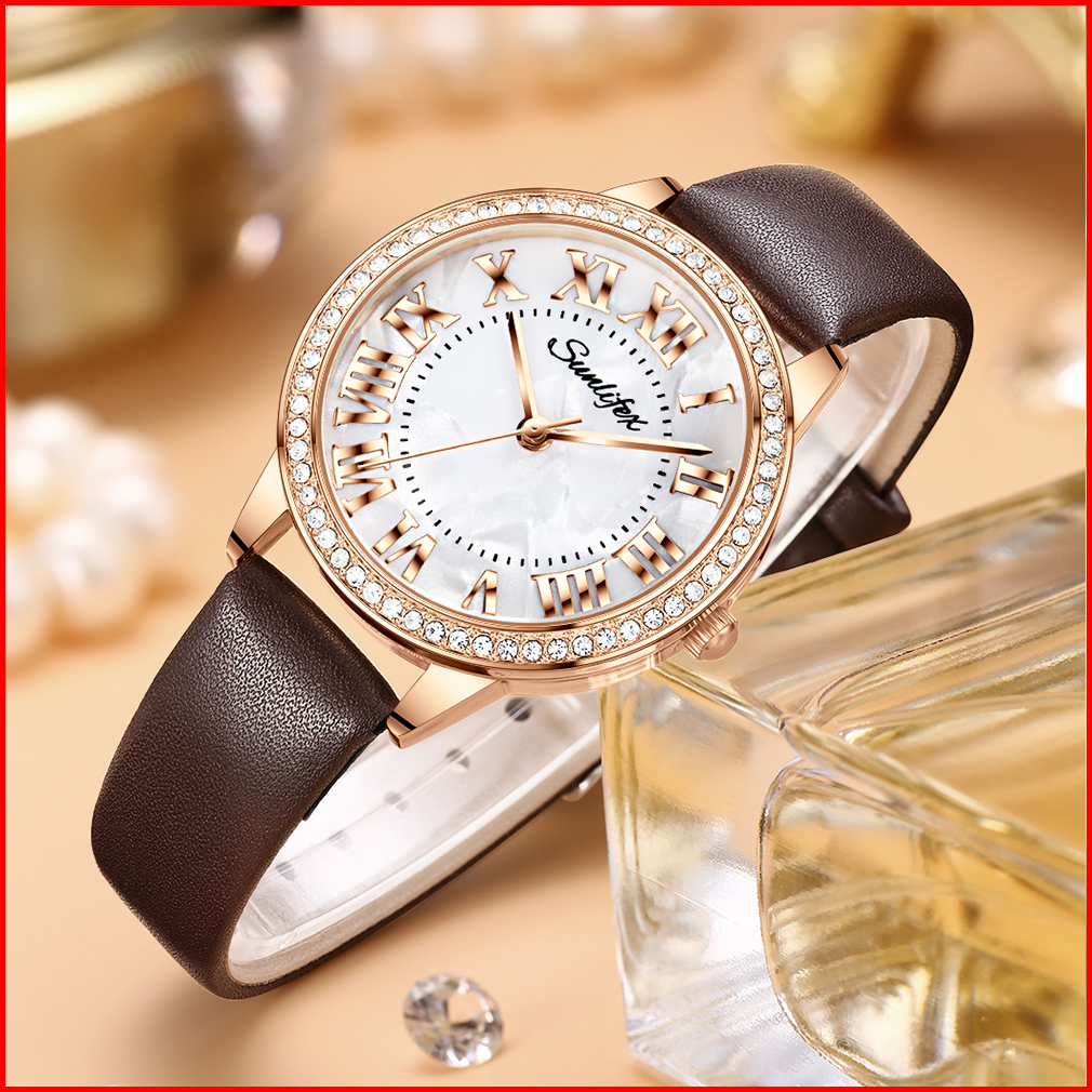 Sunlifex Jam Tangan Wanita Anti Air Kuarsa Berlian Elegan Tali Kulit Jam Tangan Cewek Original