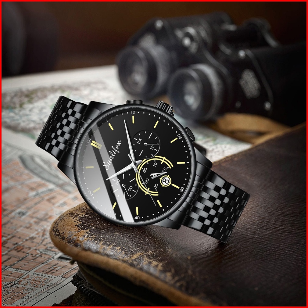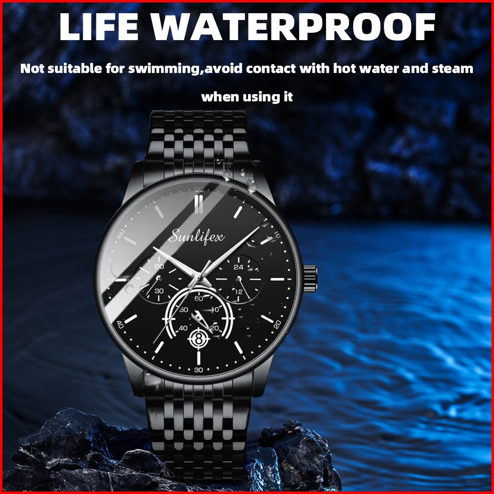 Sunlifex Jam Tangan Pria Anti Air Kuarsa Bisnis Klasik Tali Stainless Steel Jam Tangan Cowok Original 9007