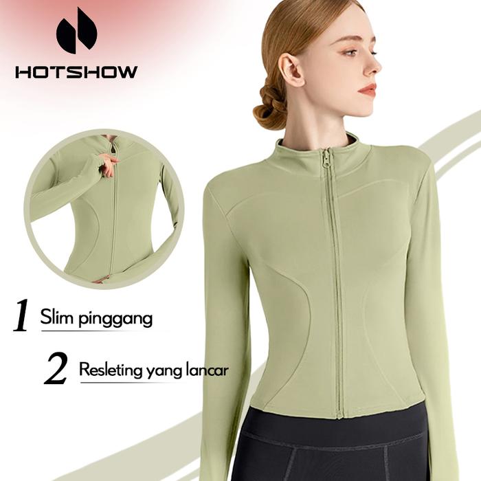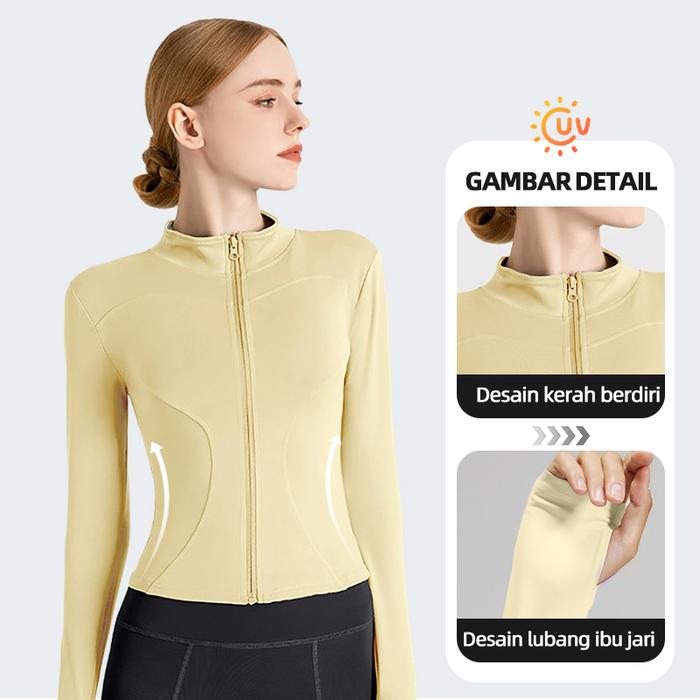 HOTSHOW JAKET OLAHRAGA WANITA JAKET MENDAKI GUNUNG WANITA LENGAN PANJANG UPF50+ UNTUK OLAHRAGA YOGA ATASAN BAJU SPORT C