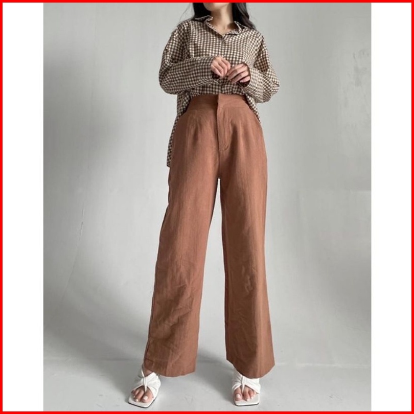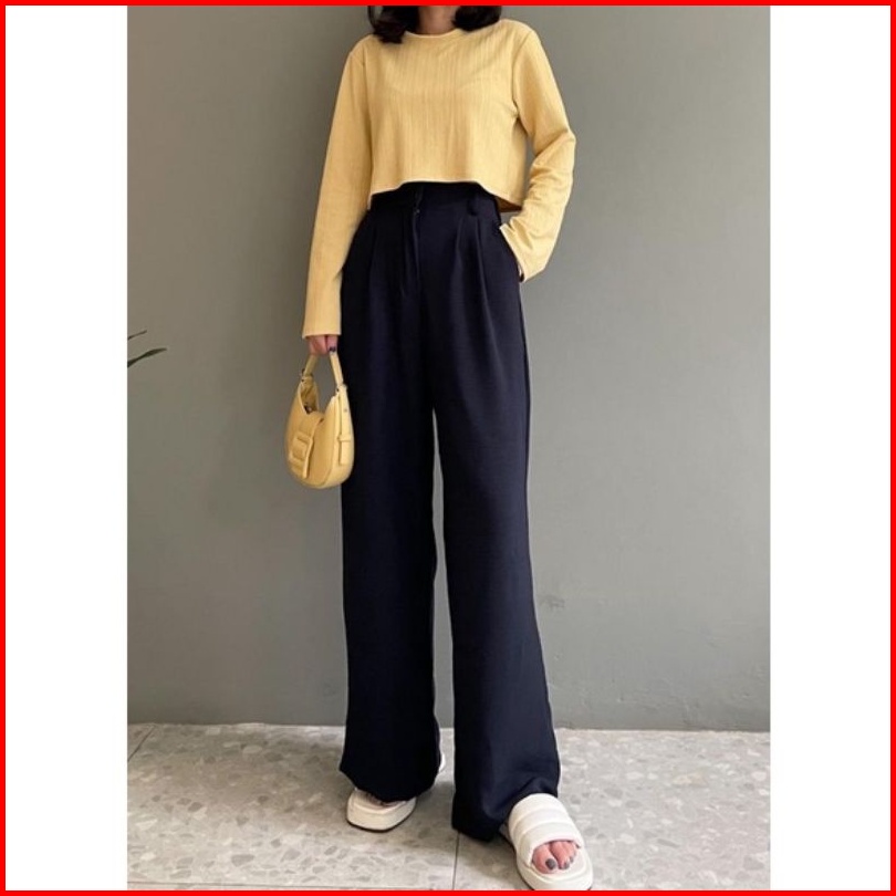 Celana Kulot Crinkle Highwaist Wanita Loose Cullote Pants Terbaru