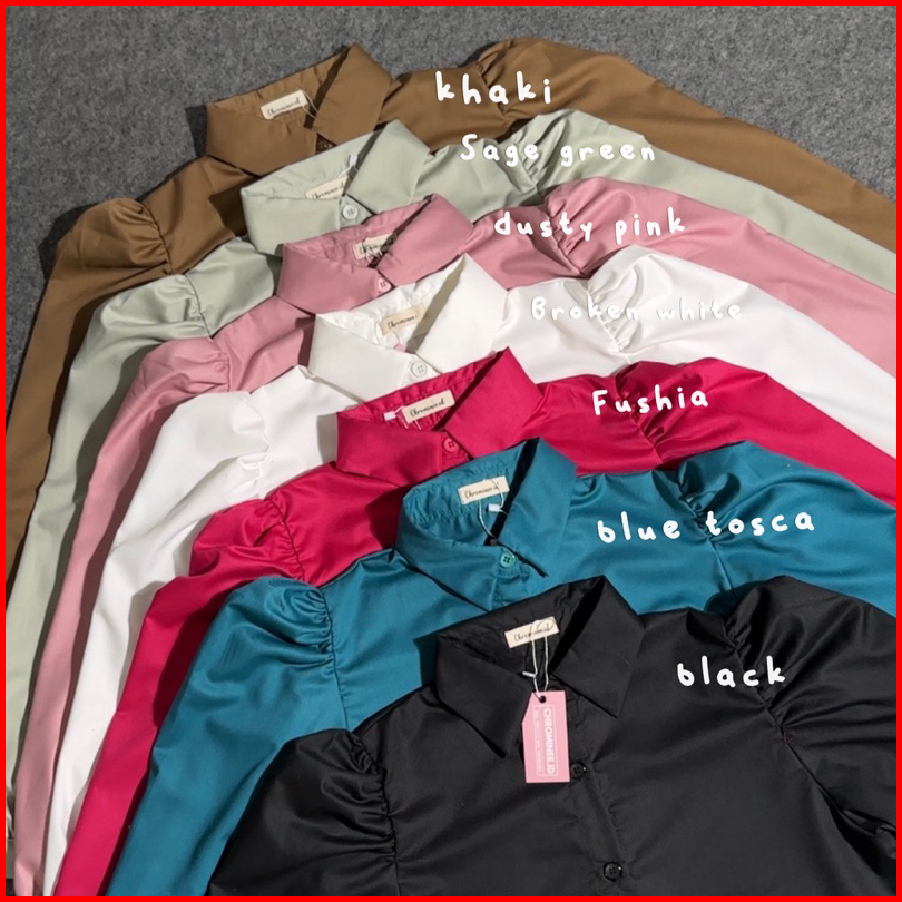 Blue tosca, Broken white, Black, Khaki, Dusty Pink, Fuschia, sage green, Abu asap