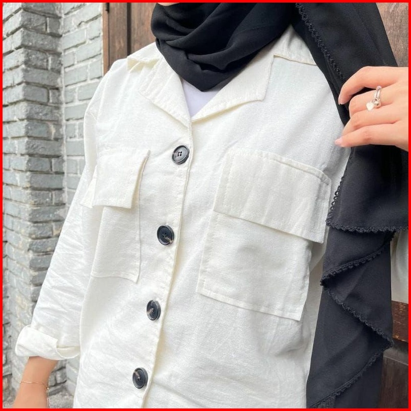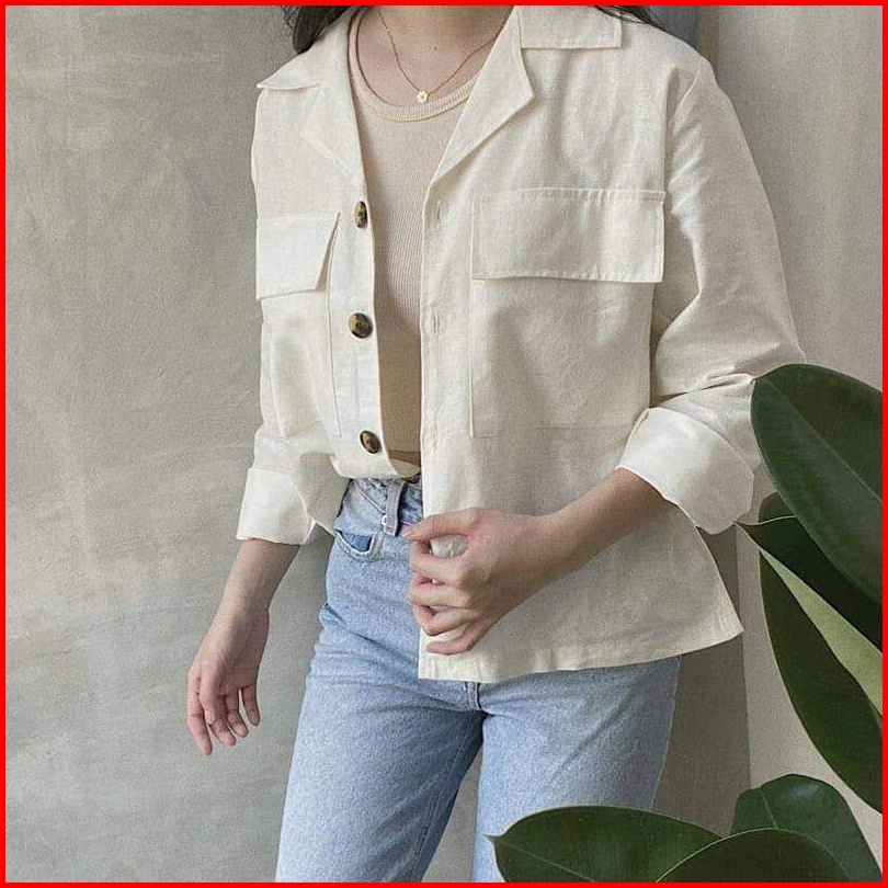 Outer Linen Dua Saku Kemeja Wanita Linen Atasan Wanita Linen