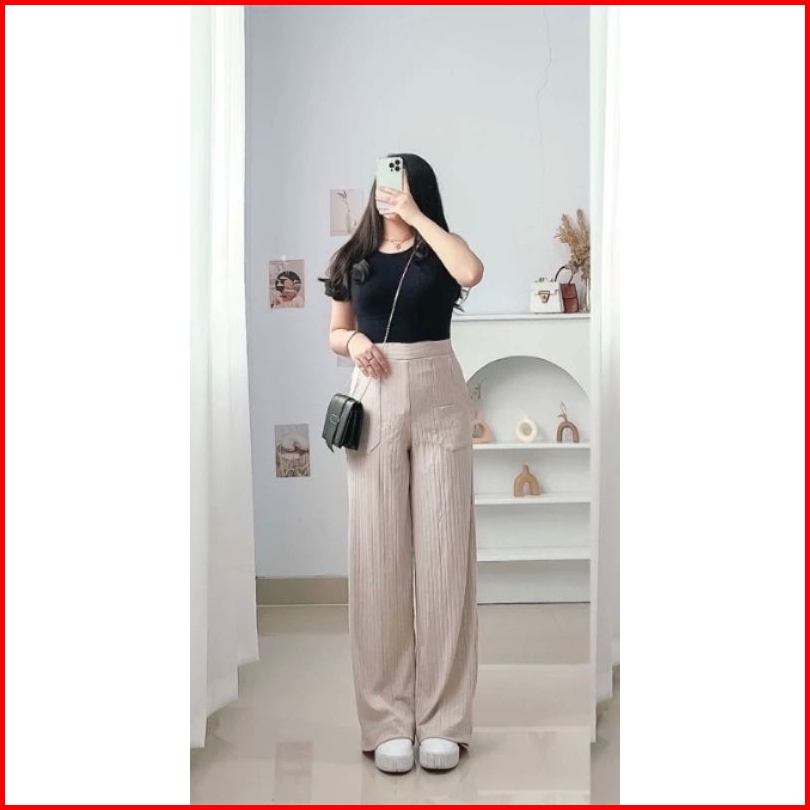 Kulot Knit Highwaist Resleting Loose Pants Higwaist Kulot Basic Stretch