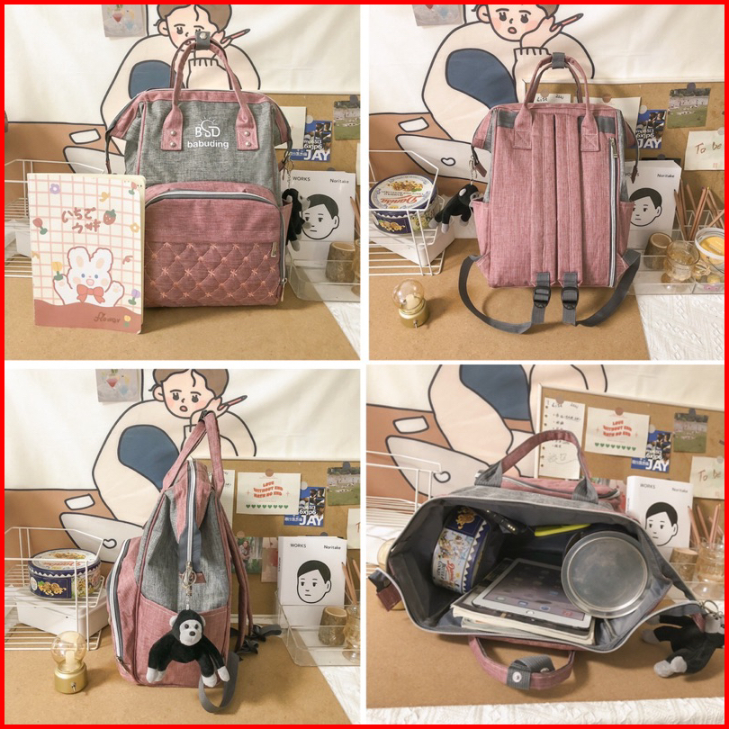 Tas Bayi 6019 - Ransel Bayi 3 In 1 Multifungsi Bsd Babuding Free Boneka Monkey Tas Perlengkapan Bayi Tas Travel Bayi Tas