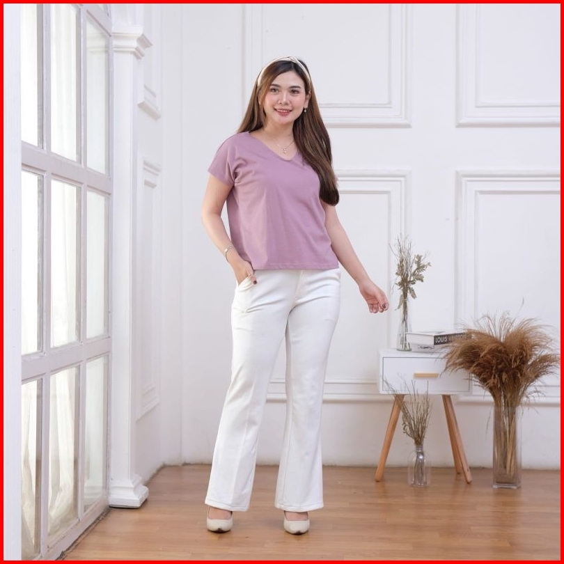 Kaos Polos Drape Vneck Wanita Dewasalengan Pendek Yukensi Tshirt Casual Baju Lekbong Bahan 24s Cotton Combat Premium Com