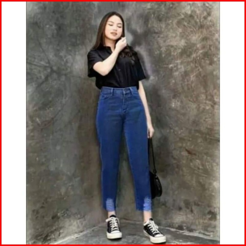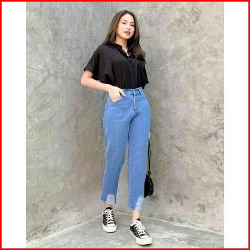 Celana Boyfriend Jeans Sobek Bawah Kekinian