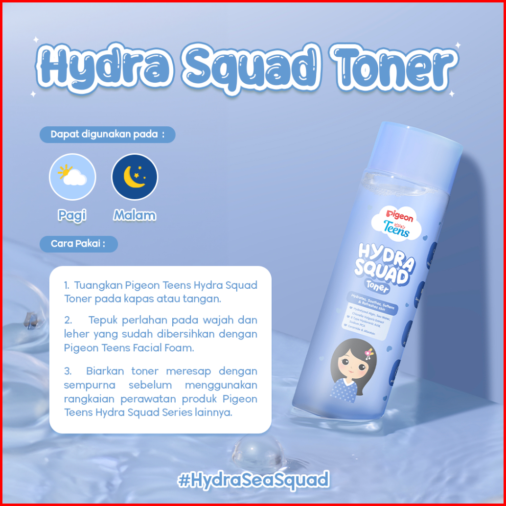 Pigeon Teens Hydra Squad Toner 100ml Skincare Remaja Ekstra Melembapkan Hyaluronic Acid Ceramide
