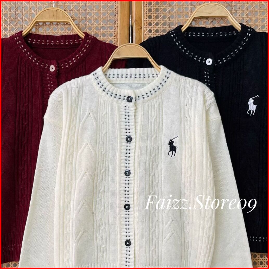 Audrin Cardy Knitwear - Outer Atasan Cardigan Rajut Wanita Kancing Motif Bordir Sido Cable Korean Style Premium