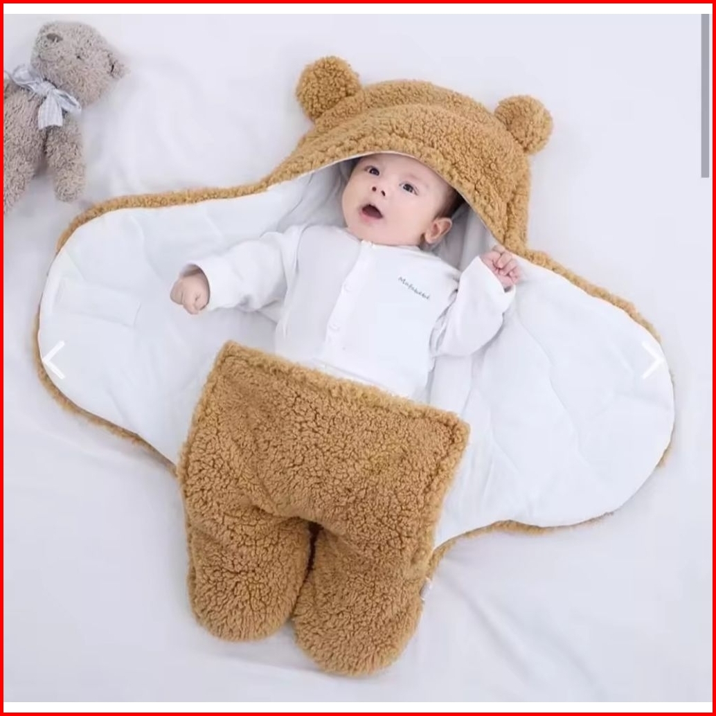 Selimut Bedong Bayi Bulu Tebal Karakter Beruang Newborn Premium Blanket