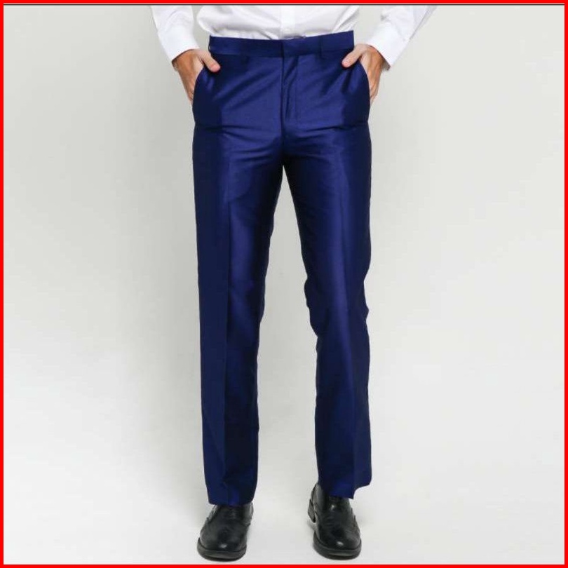 Celana Panjang Pria Bahan Dasar Wol Mengkilap Slim Fit Metalik