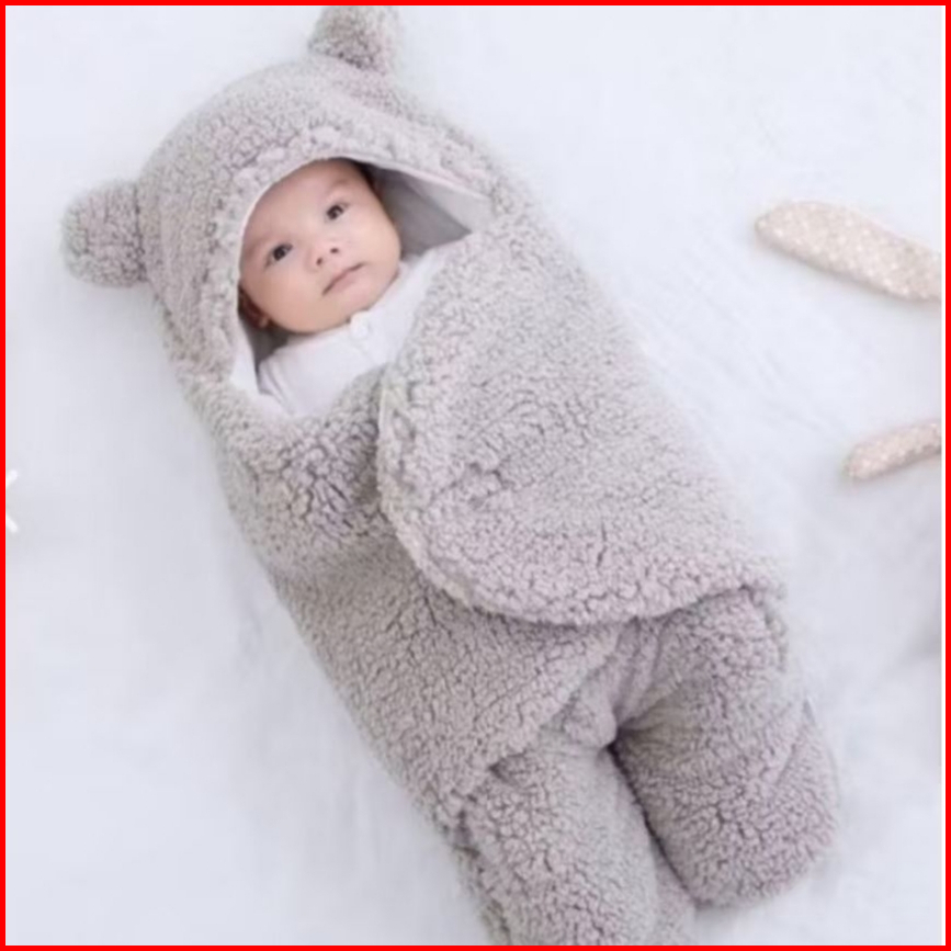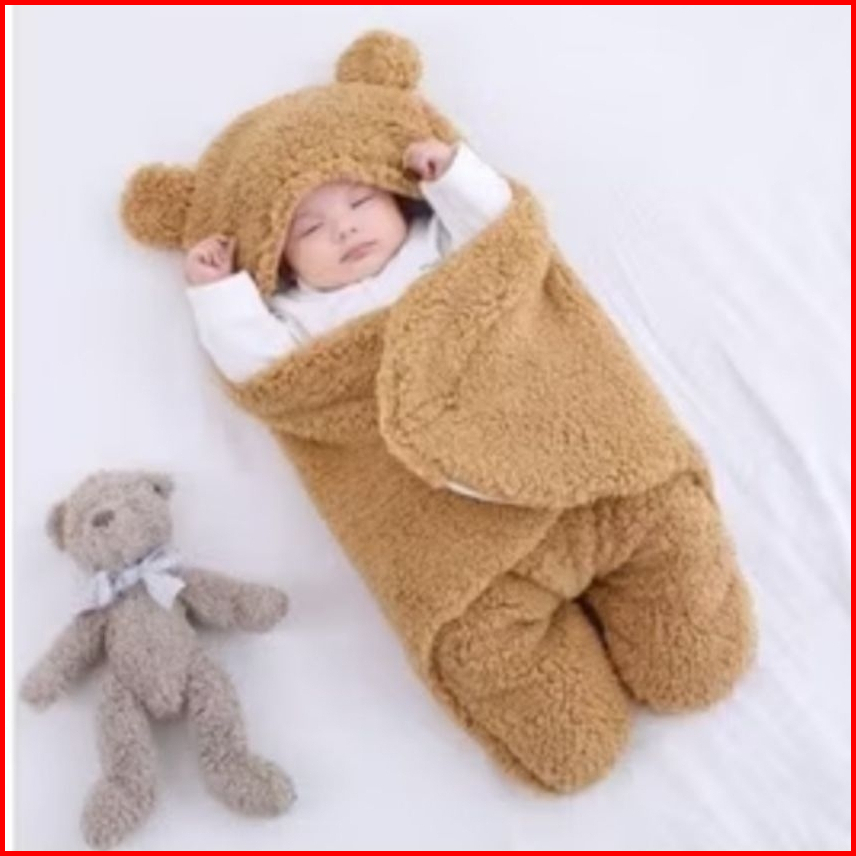 Seimut Bedong Bayi Bulu Tebal Halus Lembut Karakter Beruang Newborn Premium