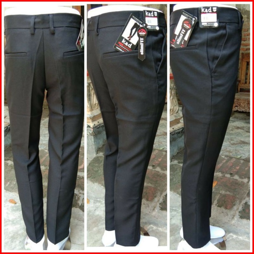 Celana Bahan Kerja Formal Kantor Panjang Hitam Dasar Pria Slimfit -