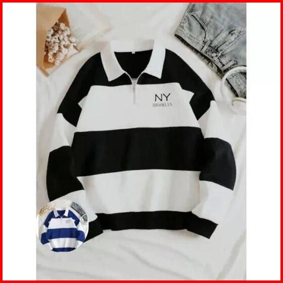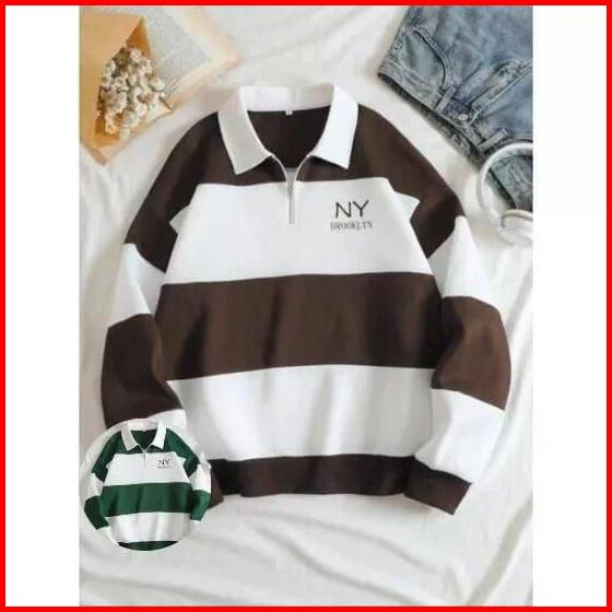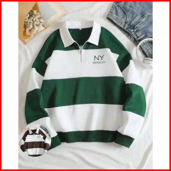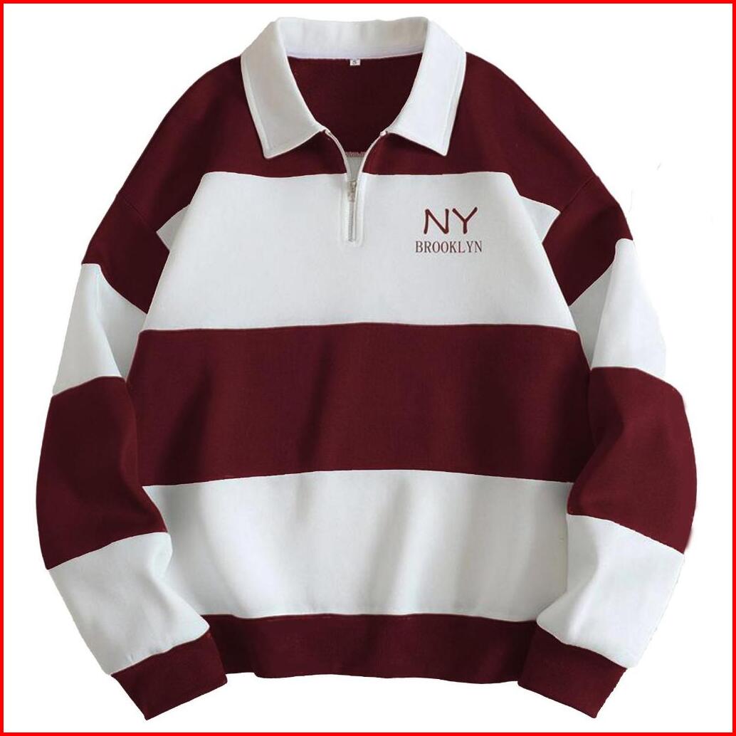 Sweater Rugby Hoodie Salur Nyork Terbaru Pria Wanita Fleece Polo Zipper O Neck Sablon Digital