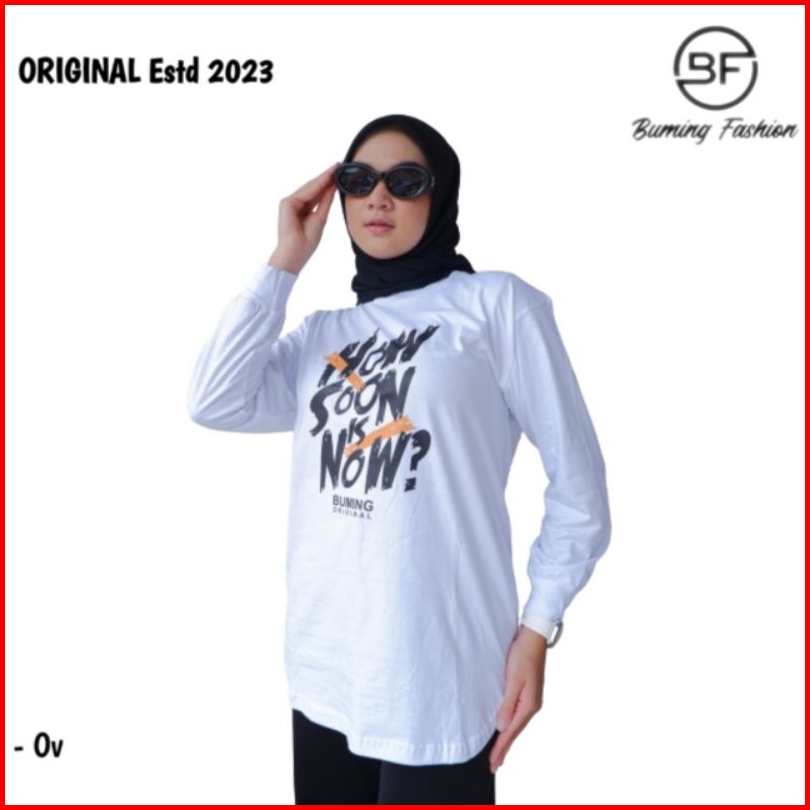 Buming Fashion Atasan Wanita Dewasa Kaos Buming Model Semi Tunik Bawah Oval Bahan Catton Combed24s Warna Putih