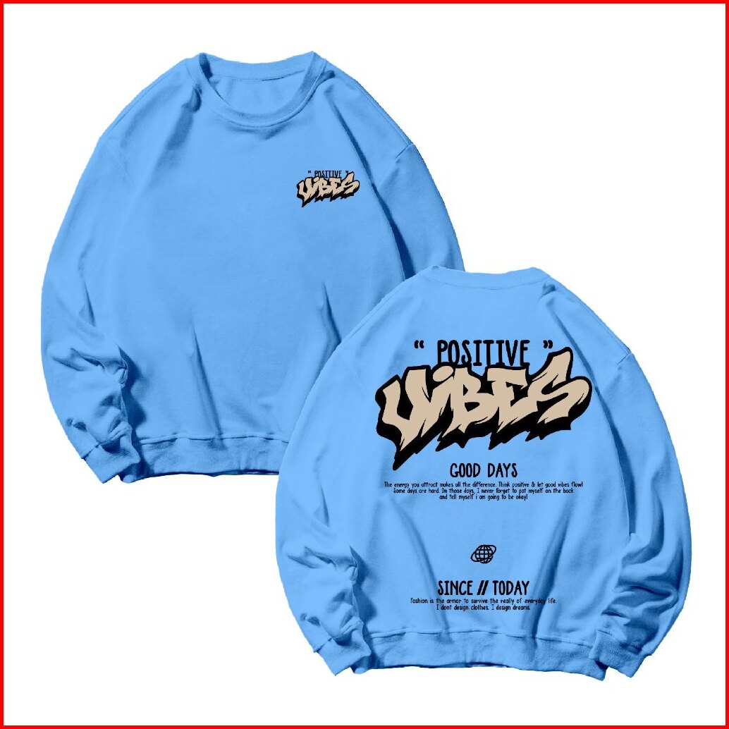 Basic Sweater Crewneck Long Sleeve Positive Vibes Size M-xxl Pria Wanita