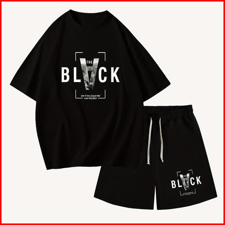 Stelan Baju Dan Celana Pendek Santai Pria Motif Black Boxer Katun Kaos Panjang Atasan